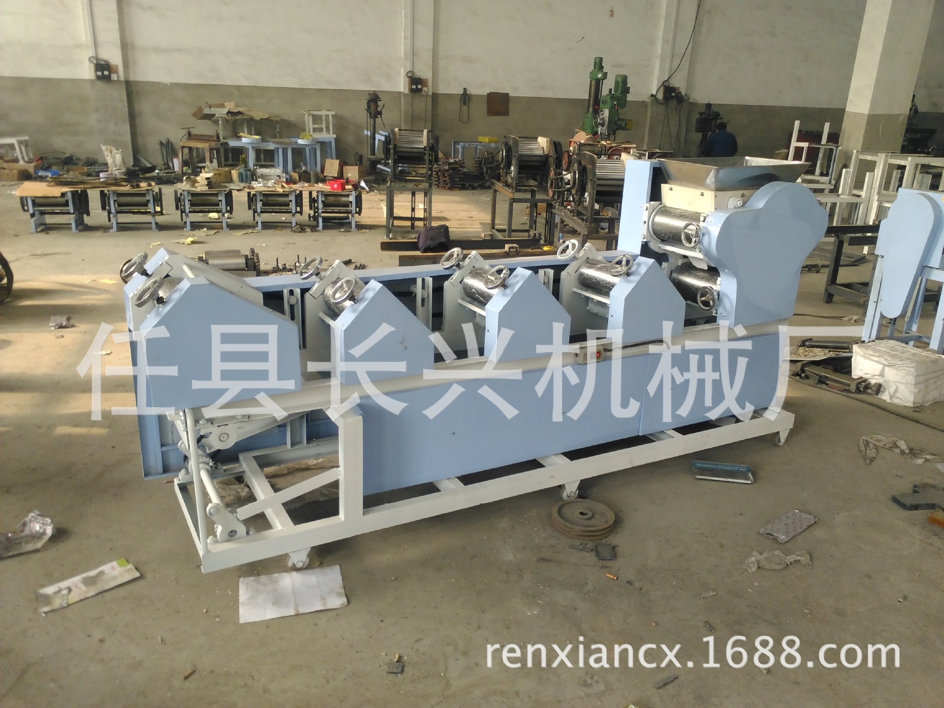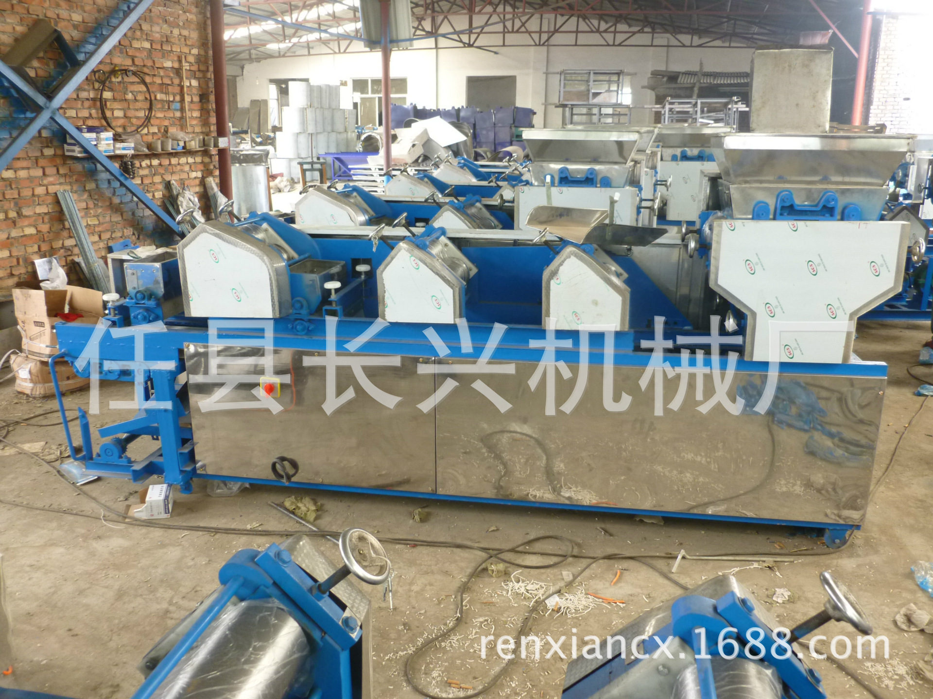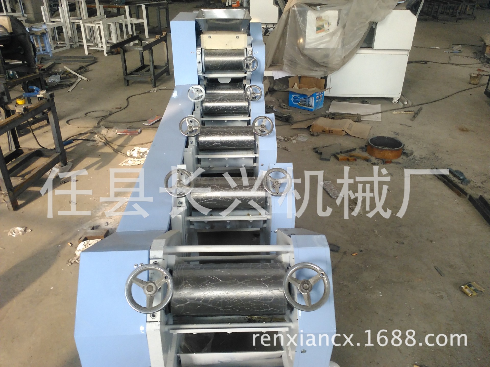 压面机的工作原理是通过面辊的相对旋转和挤压将面粉制成面条,然后用切面刀的前端将面条切成条状以形成面条。根据切面刀的规格,所有型号都可以安装不同规格的切面刀,因此在更换不同规格的切面刀后可以将机器加工成各种规格的面条。(全自动挂面机)是一种新产品面条生产线装置类别。机器从进纸到出纸连续运转。具备产量高,效率高,省时,省力,操作简便的优点。生产的面条具备良好的柔韧和良好的口感。