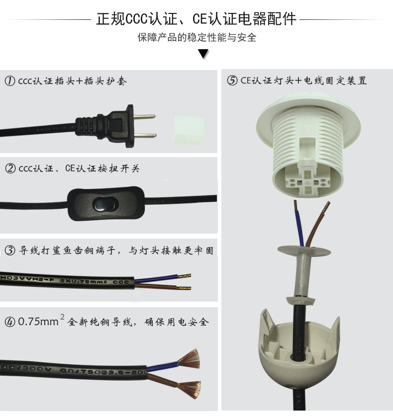 留意:开启/关两个位置,亮度无法调节,可以使用节能灯和白炽灯