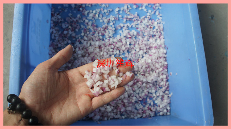 高速切丁机可以制作球形水果条,例如胡萝卜,土豆,芋头,红薯,黄瓜,洋葱,辣椒等,更是是柔软多汁的水果,例如芒果,菠萝,木瓜,苹果,草莓,竹笋,火腿等,快速微动开关或切成条状,厚度和尺寸可调,进料口有切丁,操作安全,切割速度快,一个该机相当于十个人的工作量,产量大,操作简便,清洗简便。切丁机高速适用于食品加工厂,餐饮业和饭堂。
