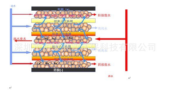 电去离子(EDI)系统主要是一种科学方式,可通过在直流电场的作用下通过分离器使水中的介电离子定向运动并通过交换选择性地渗透离子来洁净水质。膜。水处理技术:在一对电渗析器电极之间,一般而言有多组阴离子膜,阳离子膜和分离器(a,b)更替排列以形成一个密室和一个弱室(即,阳离子可以通过通过阳离子膜,而阴离子可以通过阴离子膜)。耗尽室中的阳离子通过正极膜搬迁到负极,并被浓缩室中的负极膜拦截;水中阴离子将负极膜移向正极,并在浓缩室中被正极膜拦截,从而使越过贫乏室的水中的离子渐渐减少并变成淡水,浓水中的水室中,由于阴离子和阳离子在厚室中的不停涌入,介电离子的浓度持续升高,变为浓水,从而达到脱盐,纯化,浓缩或精制的目的。