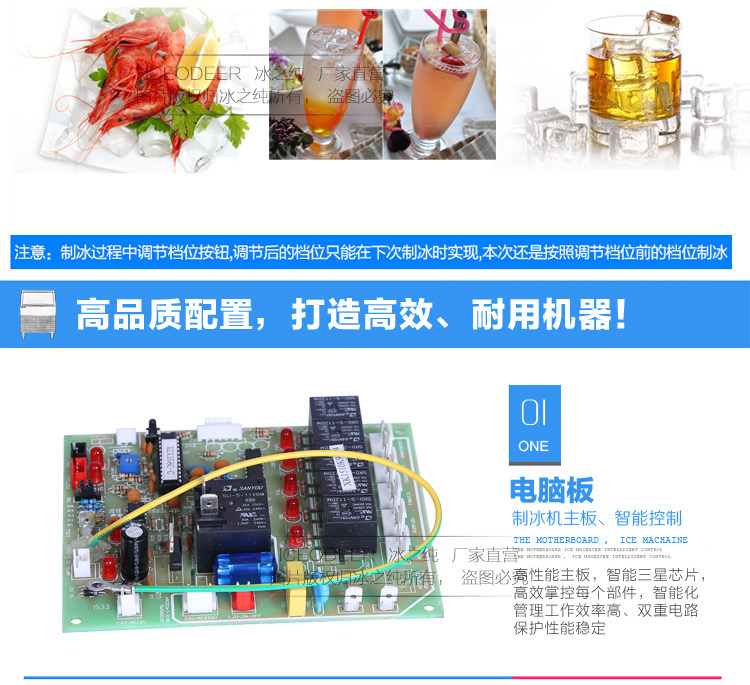 秉志纯使用三级净水系统,分别支配机器运转,降冰时间,机器运行状态检测,对机器开展真正的保护,使机器更平稳,更和谐,更耐用,操作更简便。开关键,整个过程由电脑板操纵,无须手动设立,通过面板可以见到操作过程,这就是智能,是真正的全智能制冰机。