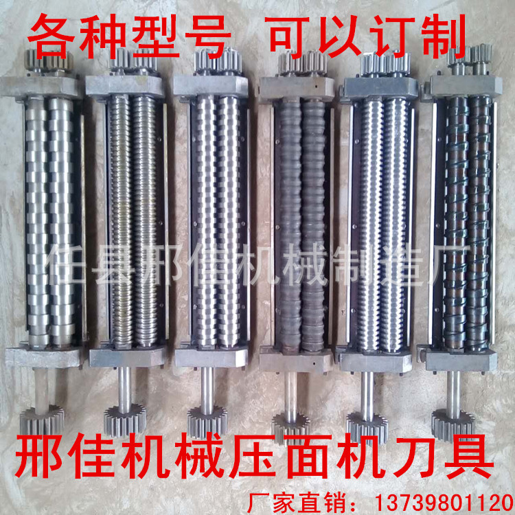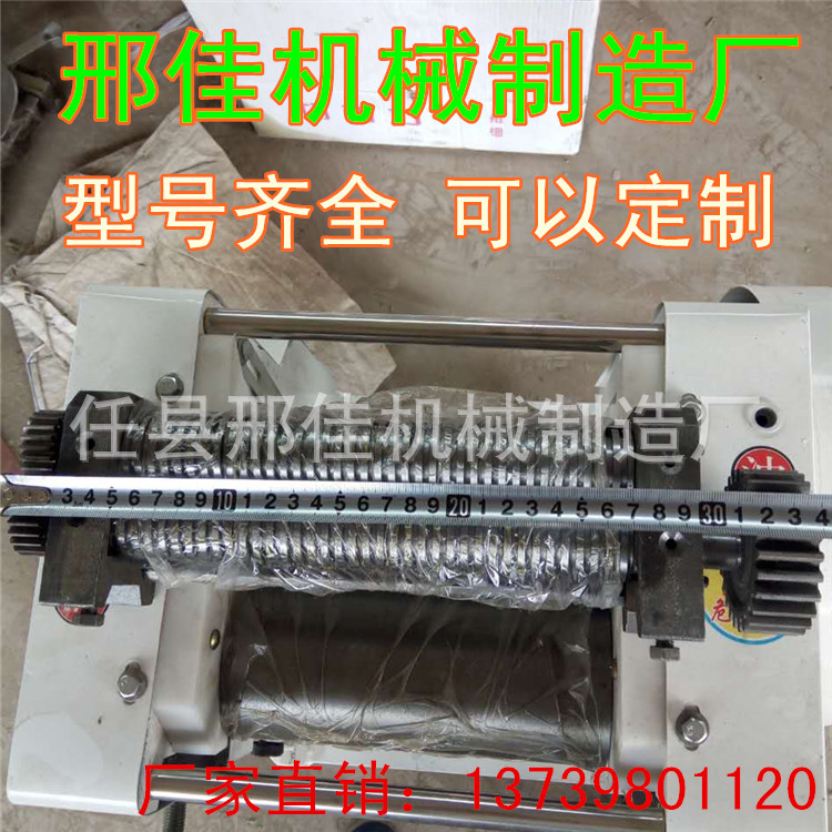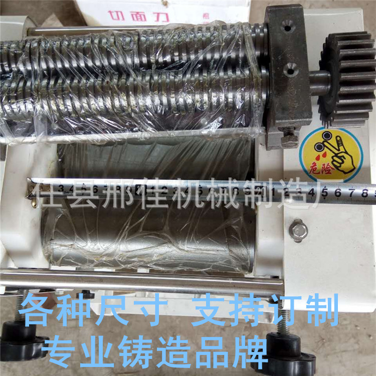 3.操作:将混杂后的面料放入面斗中,按动刀并固定刀板(或钩子)以启动机器,第三组面条将手动指引下一组,其他组可以相近。
