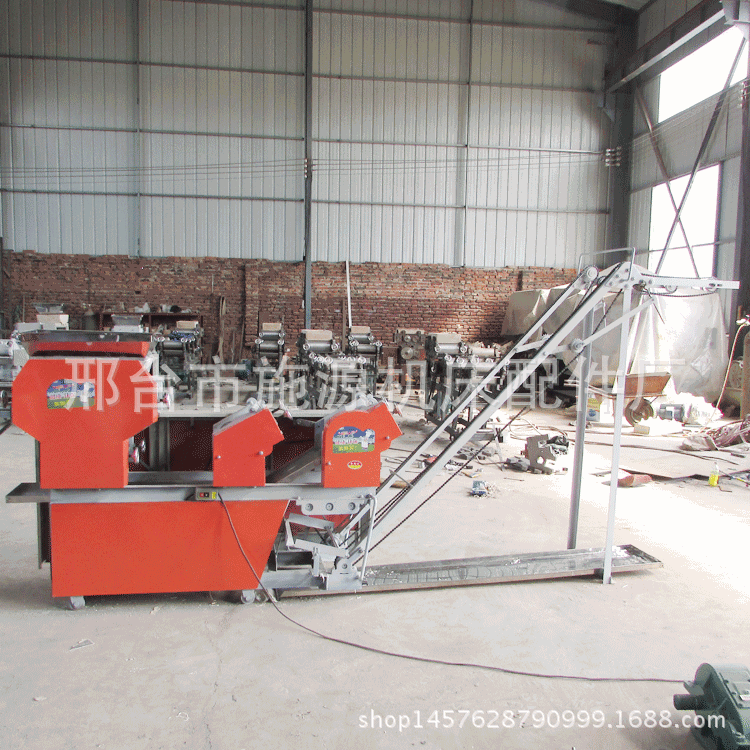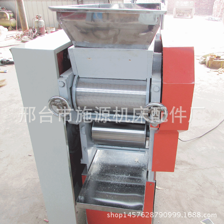 3.操作:将混合的面粉放入面条机中,按下刀并固定刀板,然后将其开启。第三组的专家组应手动指引到下一组(多个组,以此类推)。