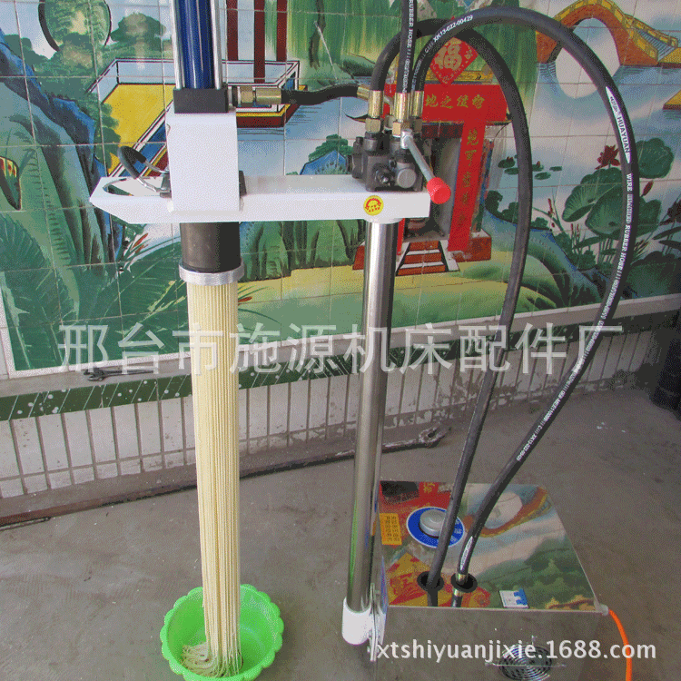 (5)根据天然原材料比重的要求,将加工后的面粉或压制面条的面粉均匀混杂。不允许将感应面粉填充到面团管中,以防范机器阻塞出口孔并致使机器过载,损坏机器零部件或烧坏电机,避免在填充后长时间空转并旋转终止填充时,请适时关闭电源开关。