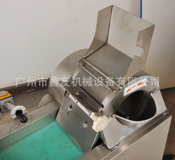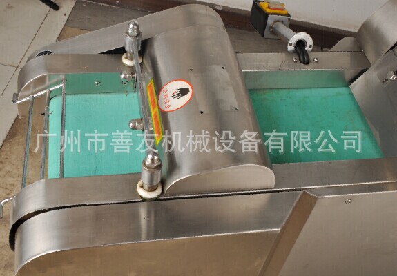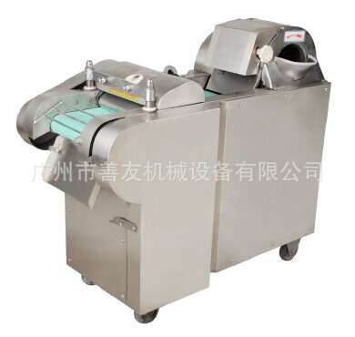 多功能切菜机可以将根,茎,叶和其他蔬菜加工成薄片,丝,切丁,菱,曲线,花切丁,花片等。。切片设备用于将硬蔬菜切成薄片,厚度为1-10在毫米范围内自由调整;往复式垂直刀将切好的蔬菜或软蔬菜(韭菜,芹菜)切成直条或切段,弯曲的条,方丁(或异型刀);传送带每次移动1-20毫米自由调节。调节量为丝段的宽度;需注意的是,切好的蔬菜的直径较厚(大于30mm)时,切片效果好,切块方便,切成小直径的切片或切块会很散乱。切好的蔬菜表面光滑,准则且组织不错,维持了手动切菜的效用。