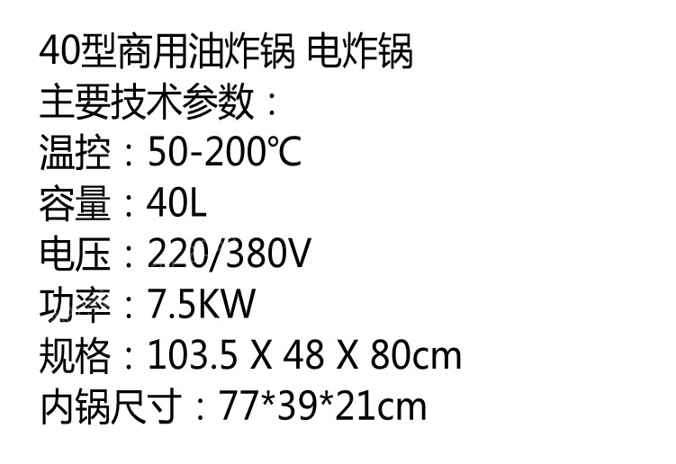 该油炸锅使用先进的内部加热元件,具备加热快,功耗低,安全保健,无毒无害等优点,适用于油炸和烹调各种食物。如鸡腿。炸羊肉串,炸油条,炸大饼,炸鱼,豆类和其他调味食品等,是食堂,食品店铺,街头小吃的现代化必需设备,是加工各种食品和菜肴的完美选择。