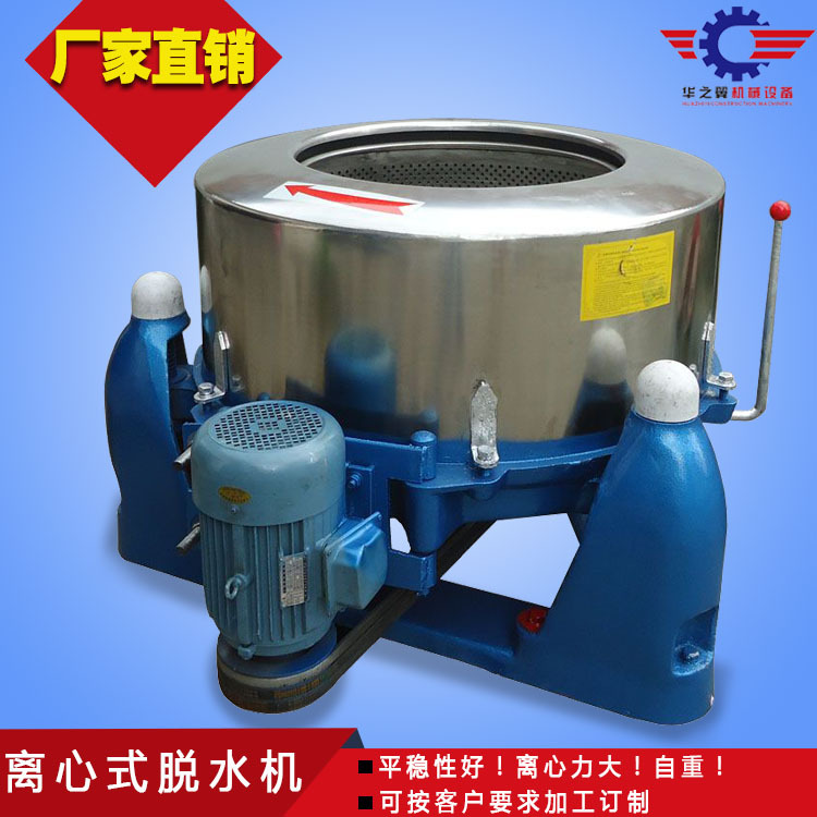 工业离心脱水机通过内部滚筒的高速旋转,内部的织物会不断地排出高速离心分开所涵盖的水分。脱水机的滚筒直径为500mm,600mm,800mm,1000mm,1200mm或更多的。一般来说,直径越小,速度越快。这取决电机产生的扭矩和滚筒的重量。测试后,脱水机越小,转速越高。例如500mm脱水机的速度达到960r/min,而1000mm脱水机的速度为750r/min,如果要提高速度,则需增加电机功率或减轻重量速度越快越好吗?脱水机越快,所含的水分就越洁净,但是速度不能无限提高,从上式可以看出速度增加得越快,向心力就越大,抖动就越大。如果地脚螺丝的安装不坚固,脱水将翻滚,甚至有或许转鼓从脱水机中飞出并引致人员伤害。许多客户要求提高速度,未经授权更换电机,增加速度和人身伤害(如果并未专业指导,请勿私下对其展开修改)