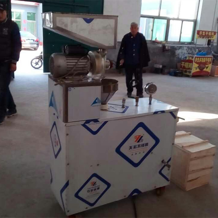 水箱中装满水,占水量的95%以上。检验各部分是否平稳可靠。打开蒸笼的加热装置。水箱中的水沸腾后,打开机器电源,使其空置1-2分钟。送入前请勿戴上机器头。用清水冲洗输送部分。每次生产前须要冲洗3-4次。水箱中的水完全沸腾后,将机头连接至机器(暂时性不在泄漏板上),通过进料口均匀地加入浸泡过的玉米镇流器,然后通过搅拌机的研磨轴研磨玉米镇流器机器,然后在水浴中蒸煮。