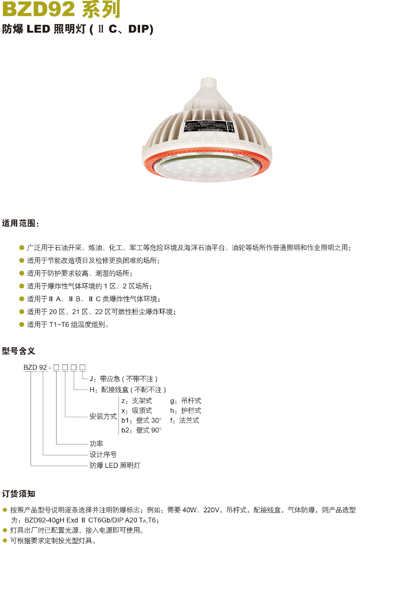 - 主要适用范围适用于IIA、IIB、IIC类爆炸性气体环境;