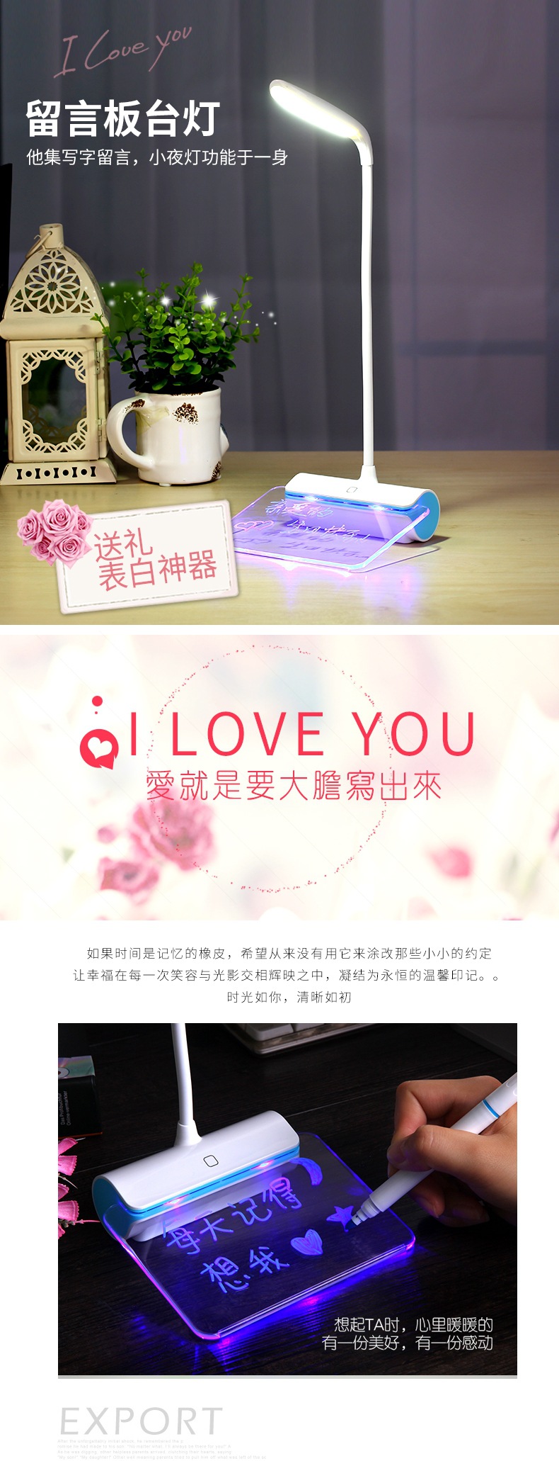 产品详情:留意!我们的留言台灯已通过在线天猫质量检验认证,所有经销商都可以放心用到。