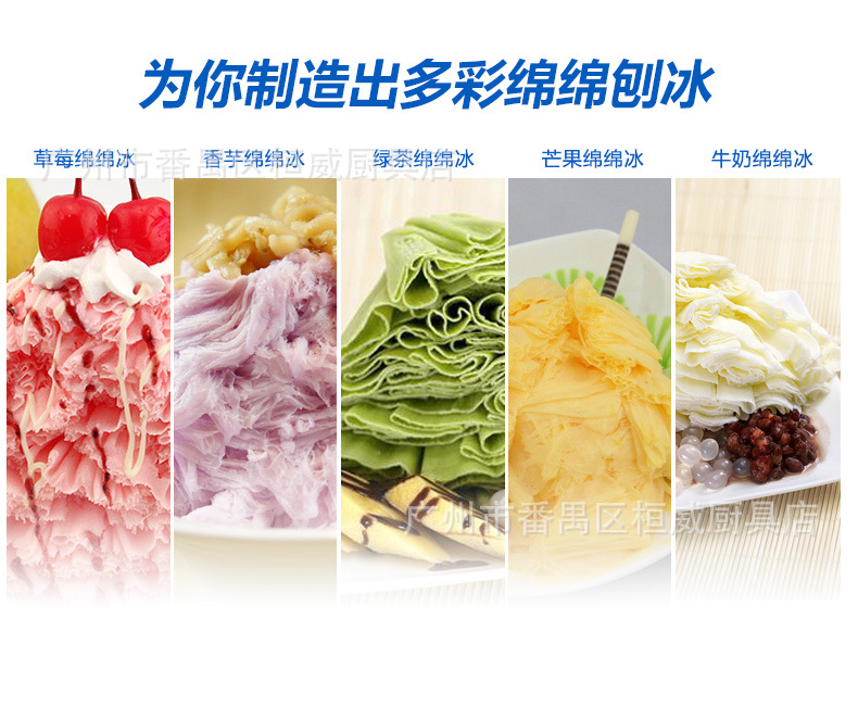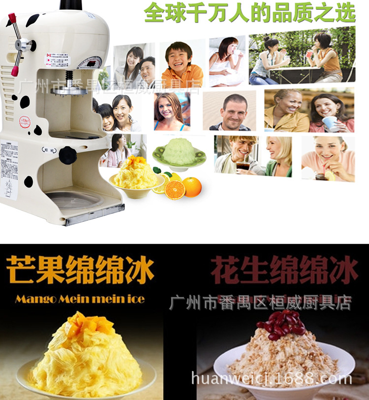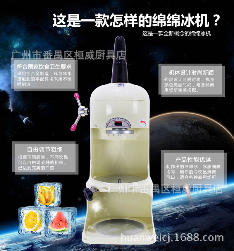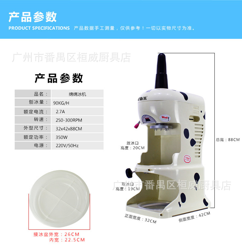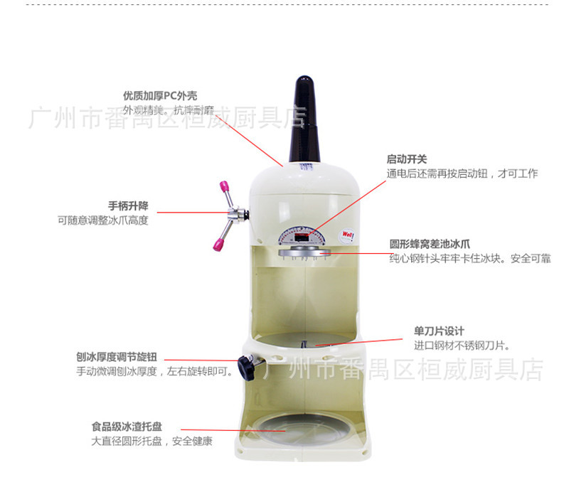 机能:可以将各种口味的冰刮成雪花状的冰(厚度可以自己调节)