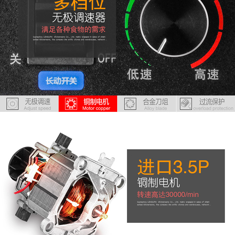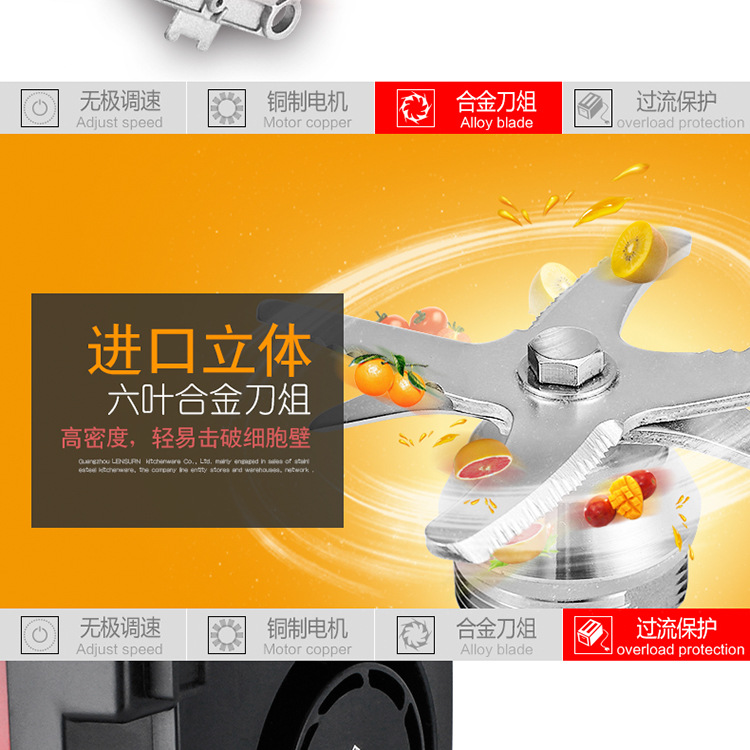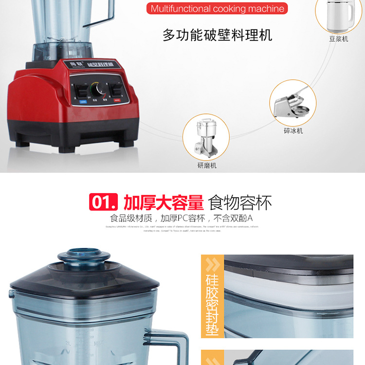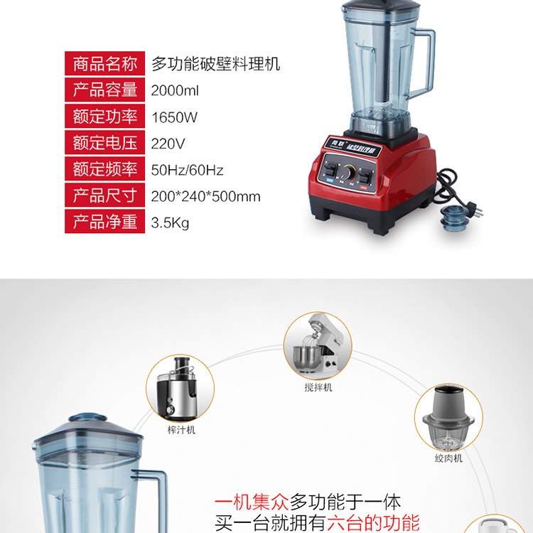- 功能榨汁,混合,制奶昔,打蛋,搅拌,切菜,干磨,碎冰,碎肉