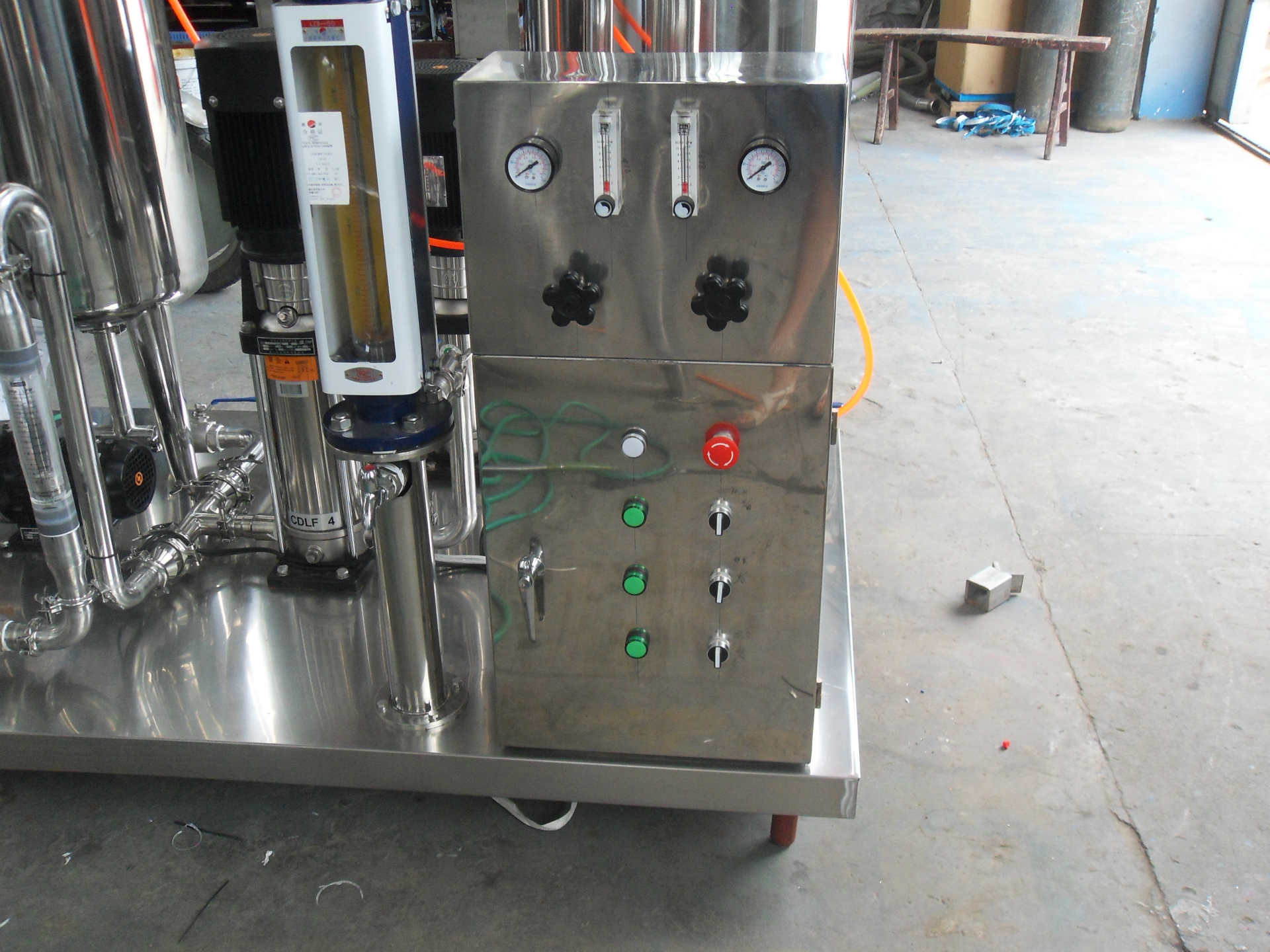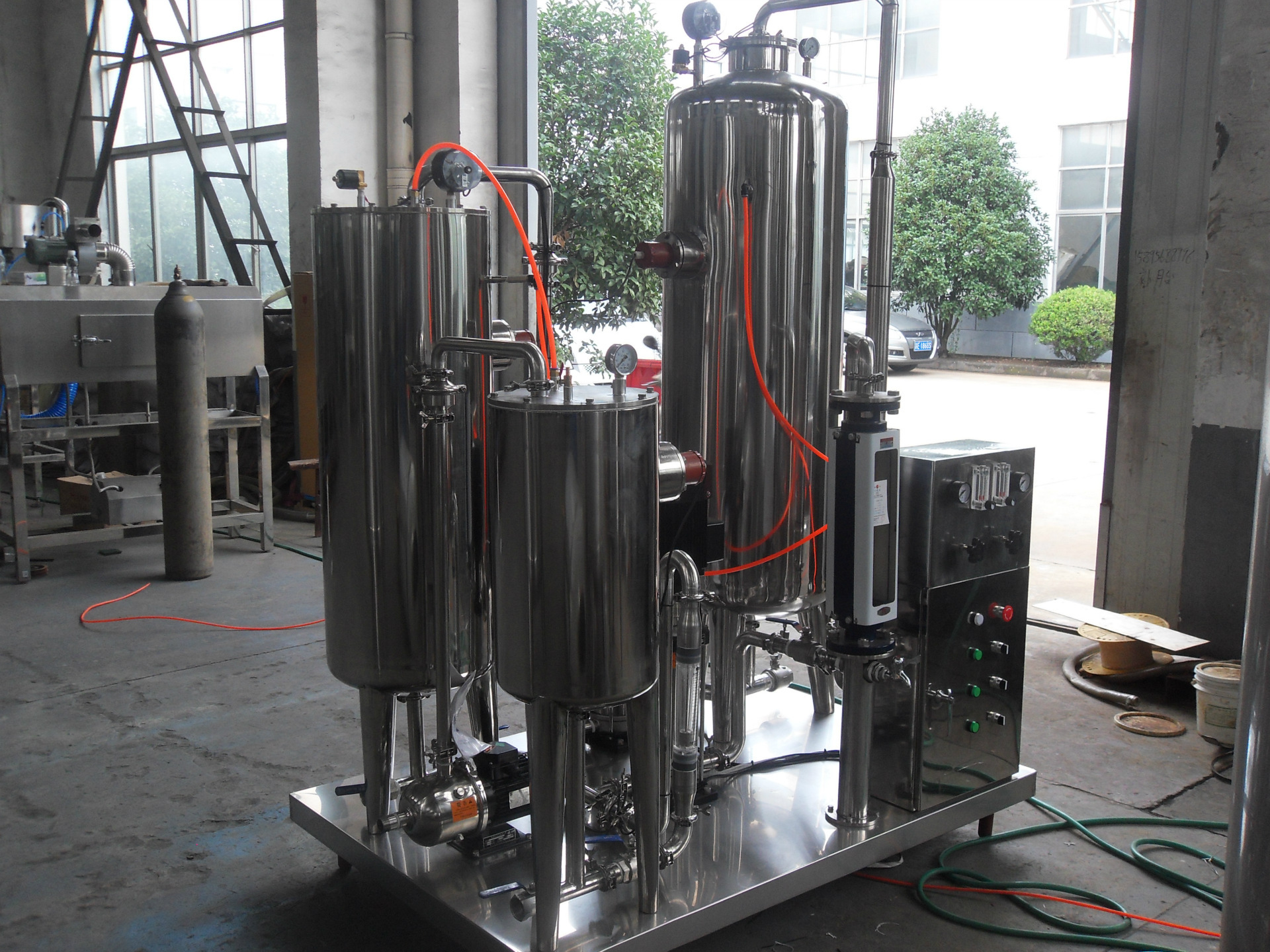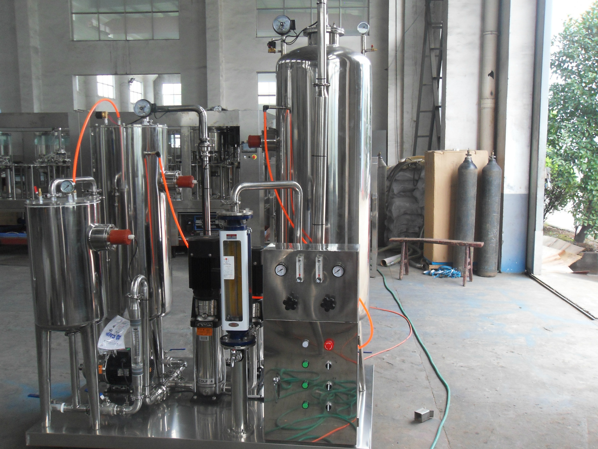 该装置主要用以碳酸饮料的生产,它是碳酸饮料生产线的预处理,并且基于不同的生产要求模型。