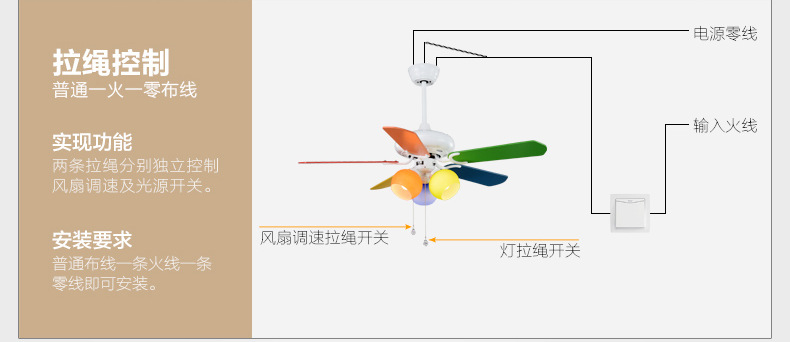 产品详情:留意:我们的产品不包括电灯泡的价钱。以下产品为手拉开关,需加壁控20元,遥控器60元,亲爱的!如果需墙控或遥控器,请联络客服