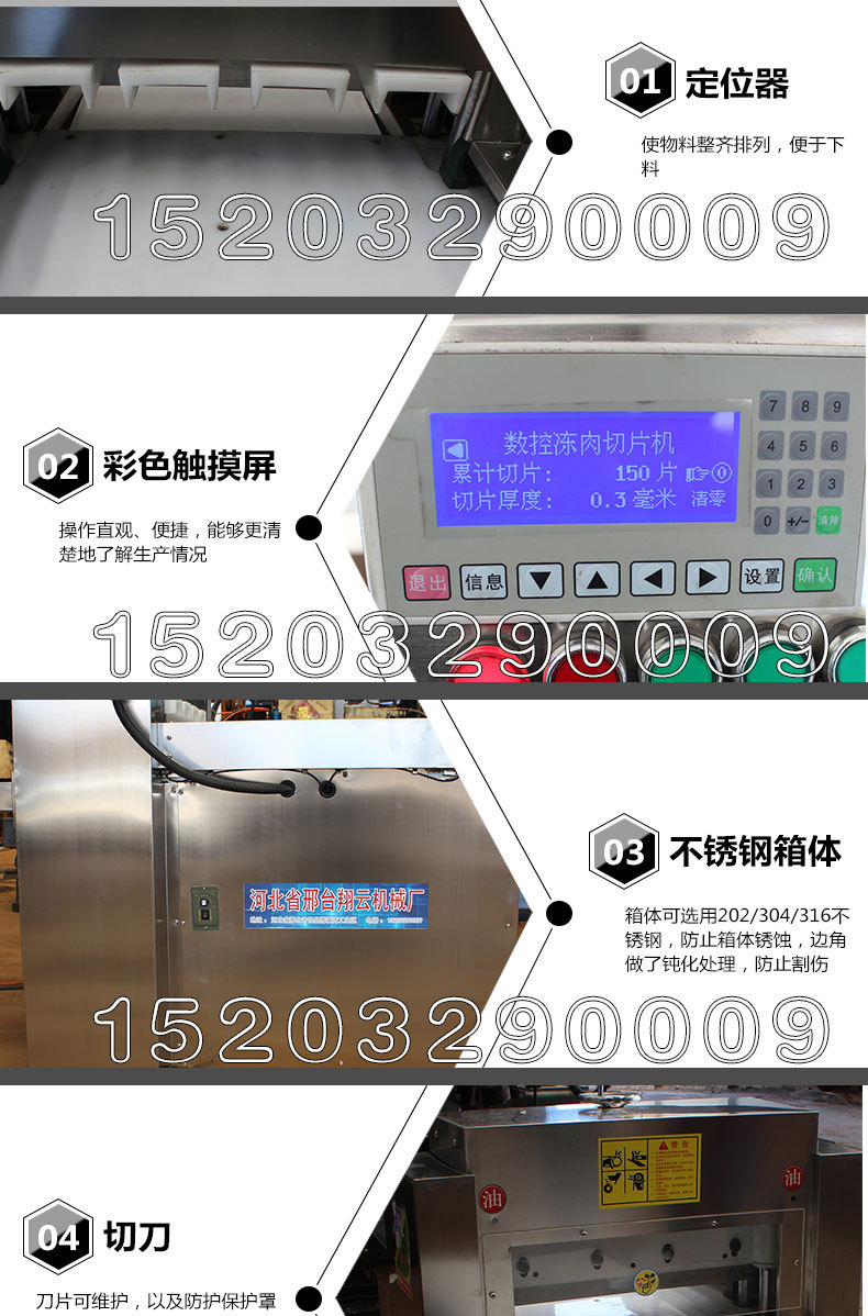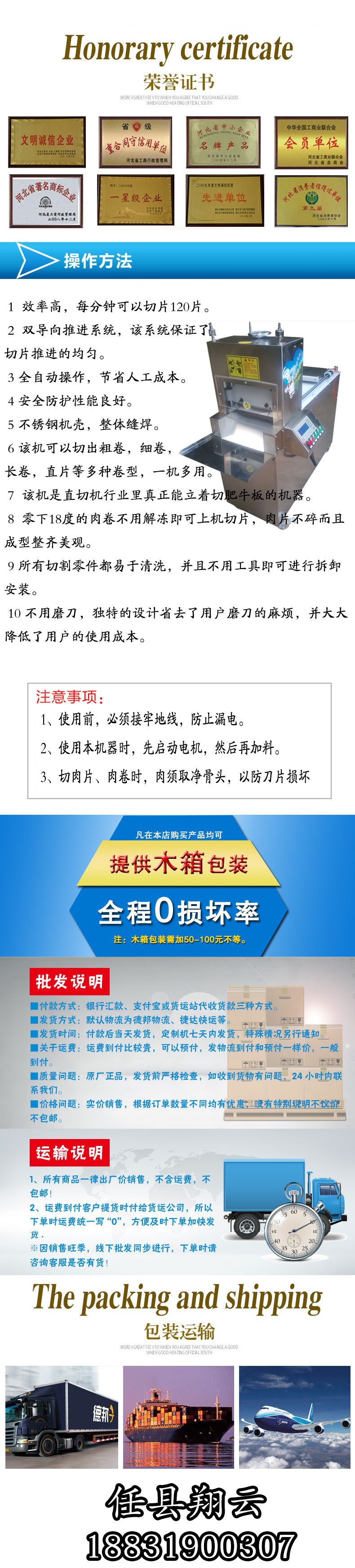 数控羊肉切片机可以每小时切碎80kg羊肉或牛肉。多功能切片机是结合垂直切片机和圆刀切片机的优点而开发制造的。它可以切冻肉,切肉后不留肉。刀片使用进口刀,更方便客户用到和特别切割。设计上,切肉更安全,不用连通刀,多功能切片机可以同时切割羊肉卷和肥牛板等各种肉类,换肉时不暂停,越发实用,可以调整以切出肉卷。切肉机的价钱该装置兼具构造连贯,外形美观,操作简便,效率高,功耗低,易于整洁和维护,安全保健,切肉效用均匀,可用到进口@loc自动卷成卷的特征。@刀片和皮带和与众不同的自动润滑设备功用强劲。它是旅馆,餐馆,饭堂,肉类加工厂等单位不可或缺的肉类加工机器。切面严整美观,易于包装,加工效率高,安全,省力。该切片机是杂货店和火锅店中小型批发商的首选。