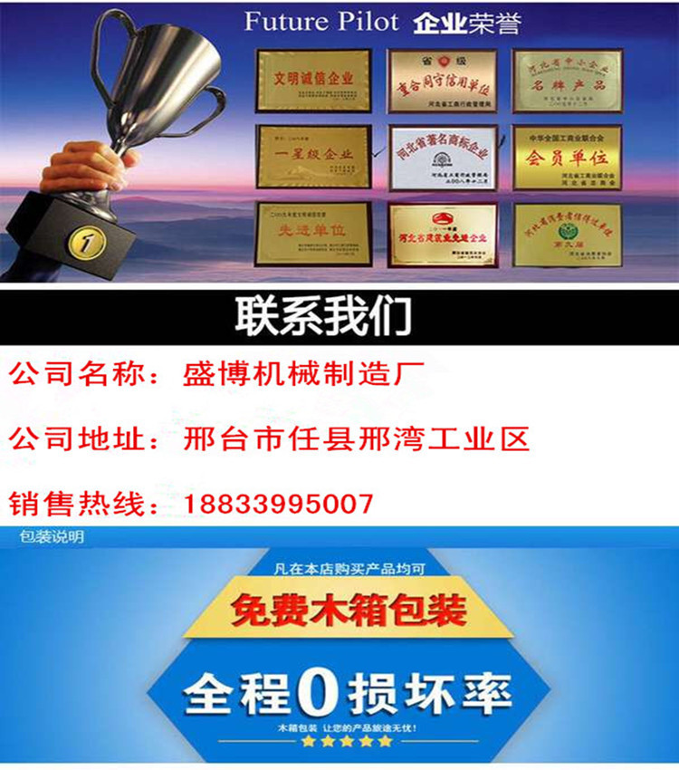 产品详情:邢台市盛博机械制造厂成立于2013年1月16日。这是一家专门从事机器装置的企业。该公司经济实力丰厚,业已享有生产执照。公司讲究技术进步和装置升级。近年来,淘汰了一批旧机器装置,引进了先进的机器装置,实现了生产现代化。发展产业,振兴企业是公司的发展目标。几年来,公司凭着不懈的奋斗,开拓和进取,在省内外建筑物市场中占据一席之地,取得了客户和施工单位的好评。自成立以来,公司不停谋求新的发展,积聚了丰沛的创作经验,并掌握了各种新的建筑技术。多来盛博mechanicalequipment坚称“质量第一,用户至上”的服务主旨,并遵循“优质,高效,工作的态度”,为社会创造了大量优质的精品机器。