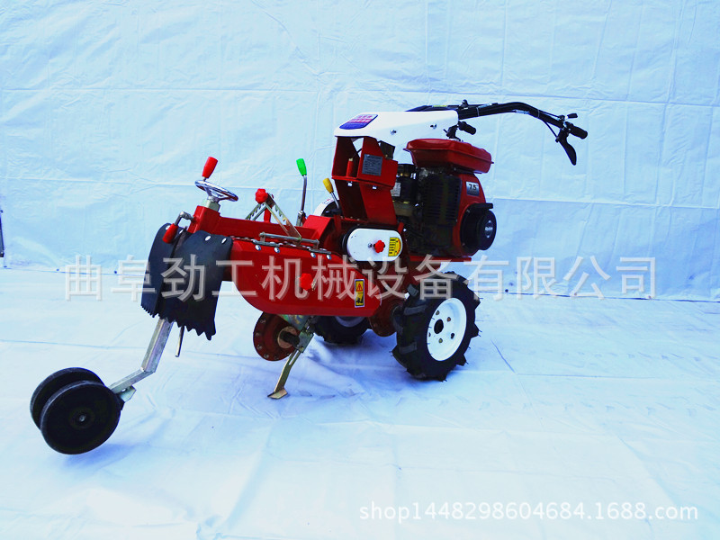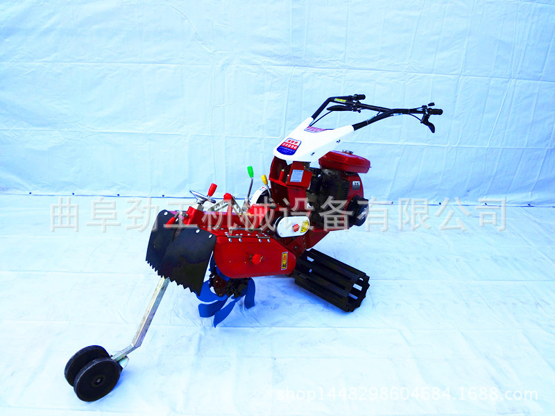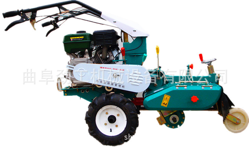 挖沟和土壤耕种机也叫作通用管理机。这是一种农业机械产品,专门用以果园,菜田,温室,丘陵斜坡和小块田地(水田和旱地)的操作,它可以爬坡,横过山脊并具有稳固的阶梯。这是一台多功能农业机械。可以用通用框架上的不同操作构件取而代之它。它可以展开播种,中耕,土壤耕作,追肥,打褶等操作,节约了人工和时间,根据不同的配置,可以实现旋耕和垄垄等功能。它体积小,重量轻。它适合在各种地貌和环境中展开操作。它具有多种功能,是小型农业机械领域中最先进的产品。
