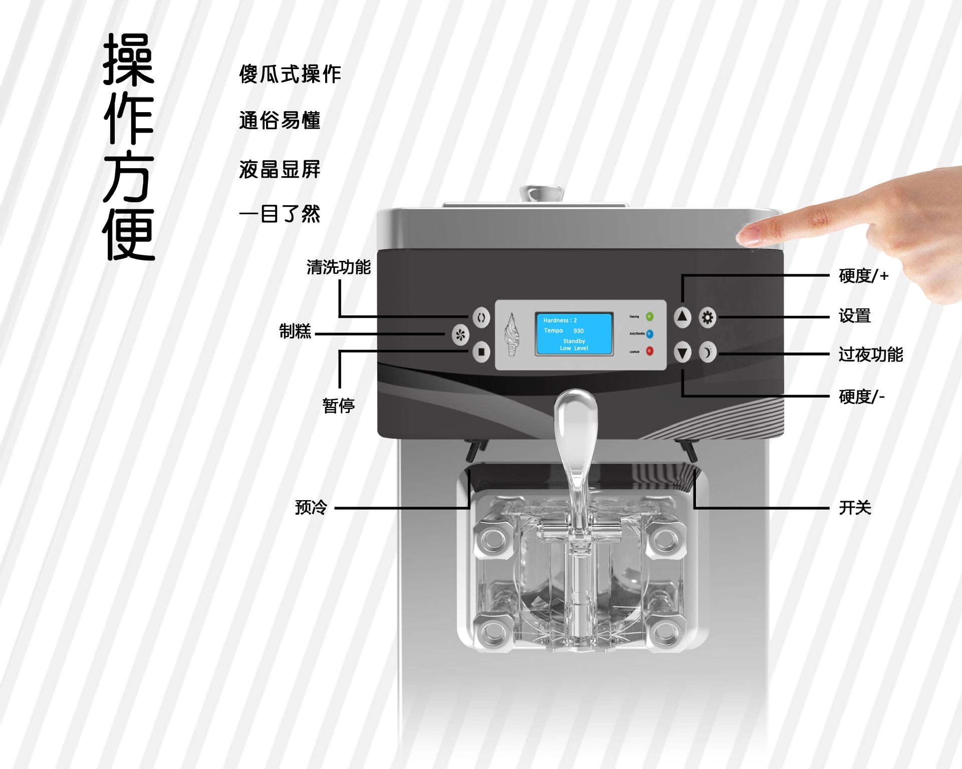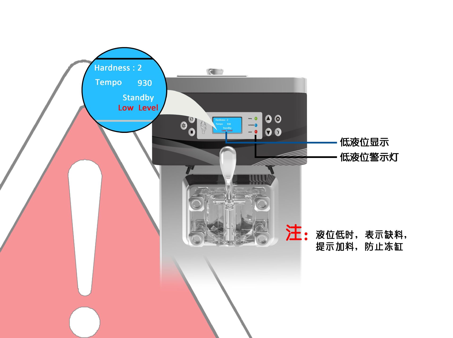 1.开启物料时,冰淇淋粉水(水适当冷热水)
