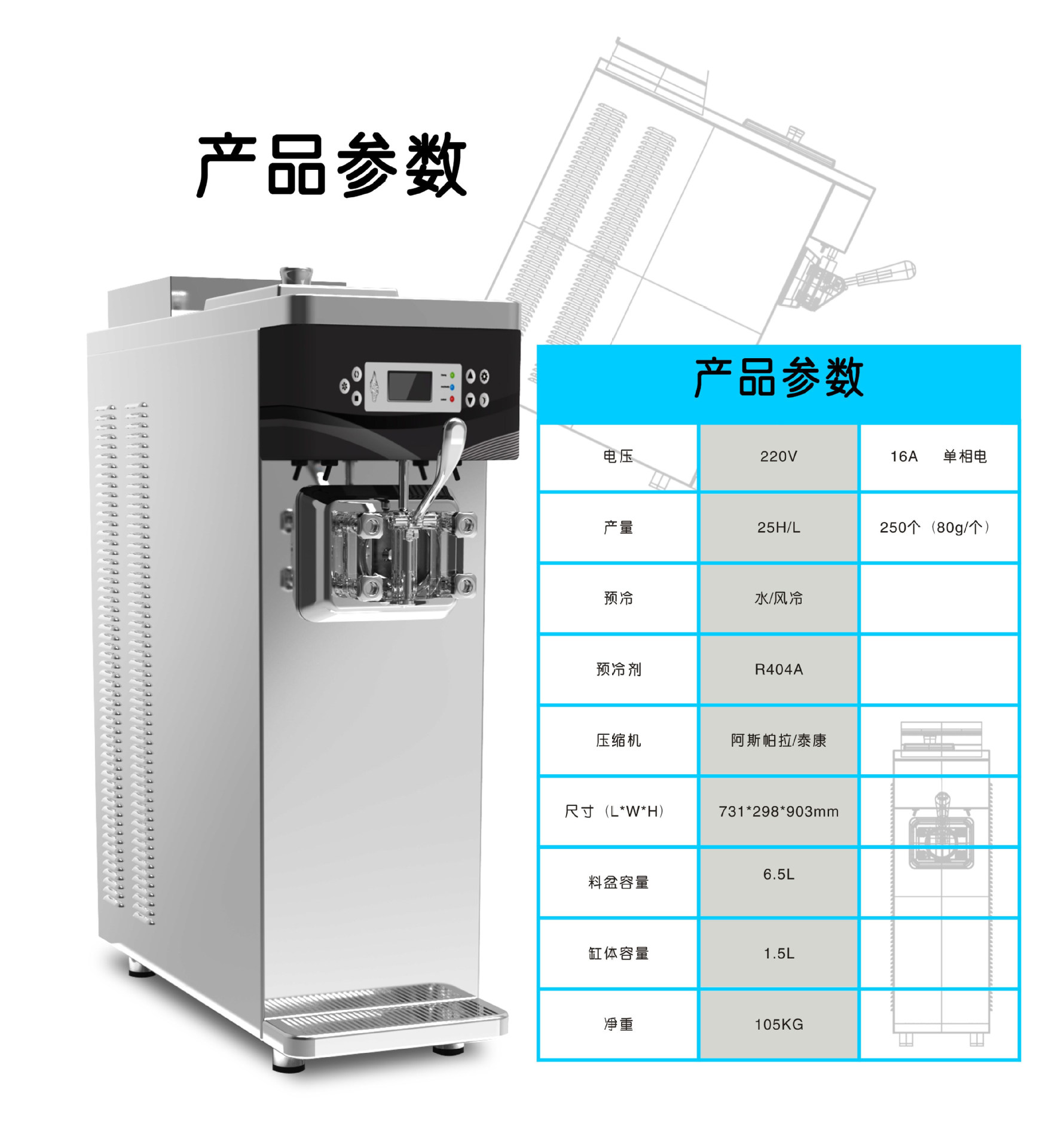 冰淇淋机的内部是含有压缩机的电器。接到货物后,须要将其置放一晚后才能开机。
