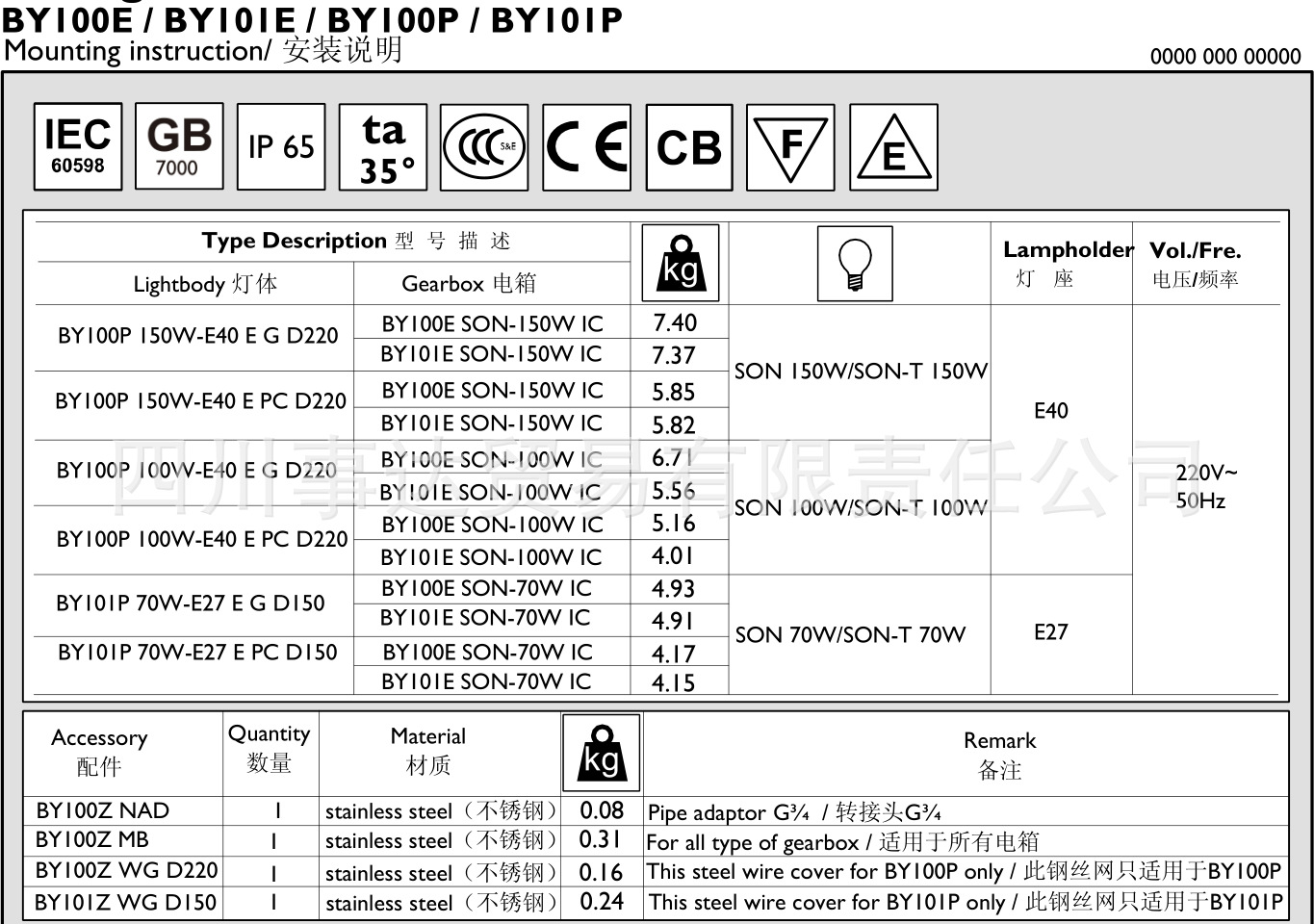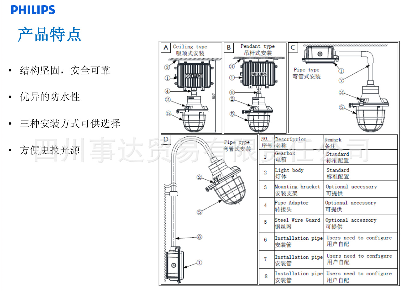 - 光源类型室内外工业区域照明、化工、钢铁、电力