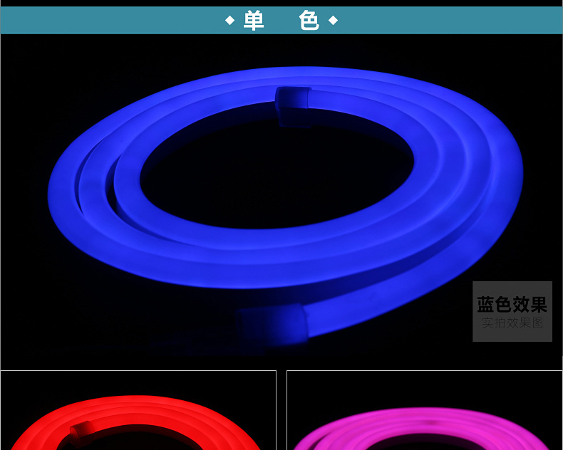 6.A级线路板(优点:铜的厚度是一般而言铜厚度的两倍以上,双环并联,一个灯珠的故障不会影响一米。中间的灯珠不亮),灯珠的密度加上橡胶材质的厚度,从第一个灯珠到背面的光将遮盖中间的暗区,并且不会形成暗区)