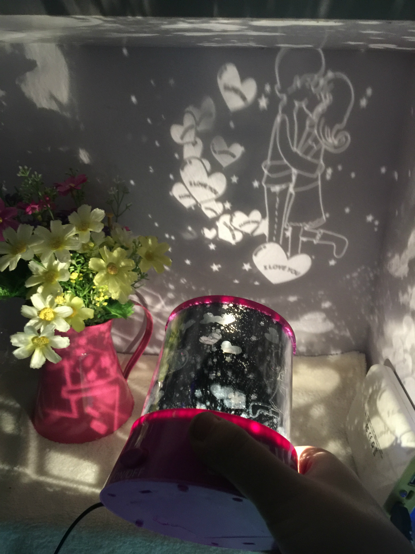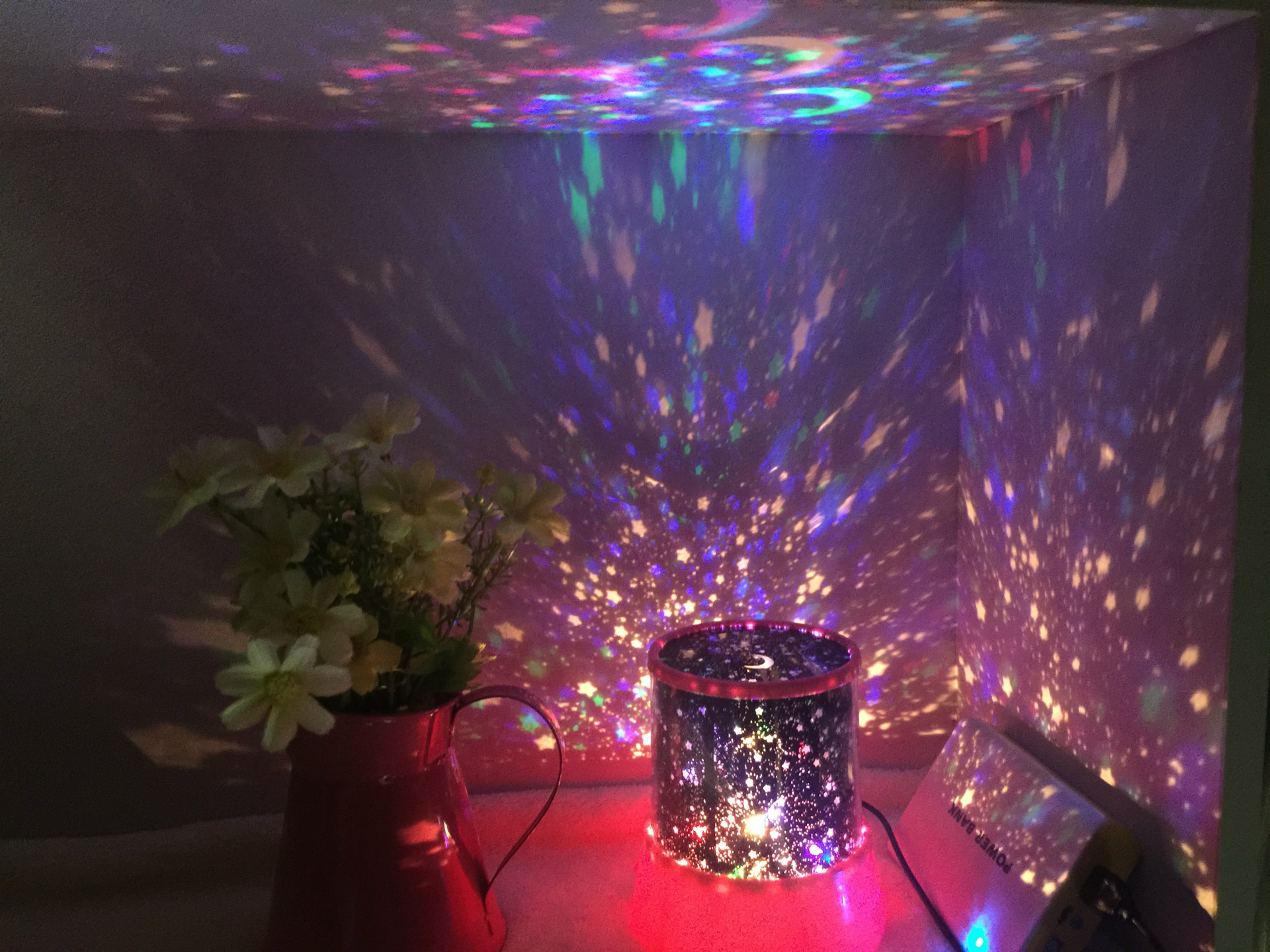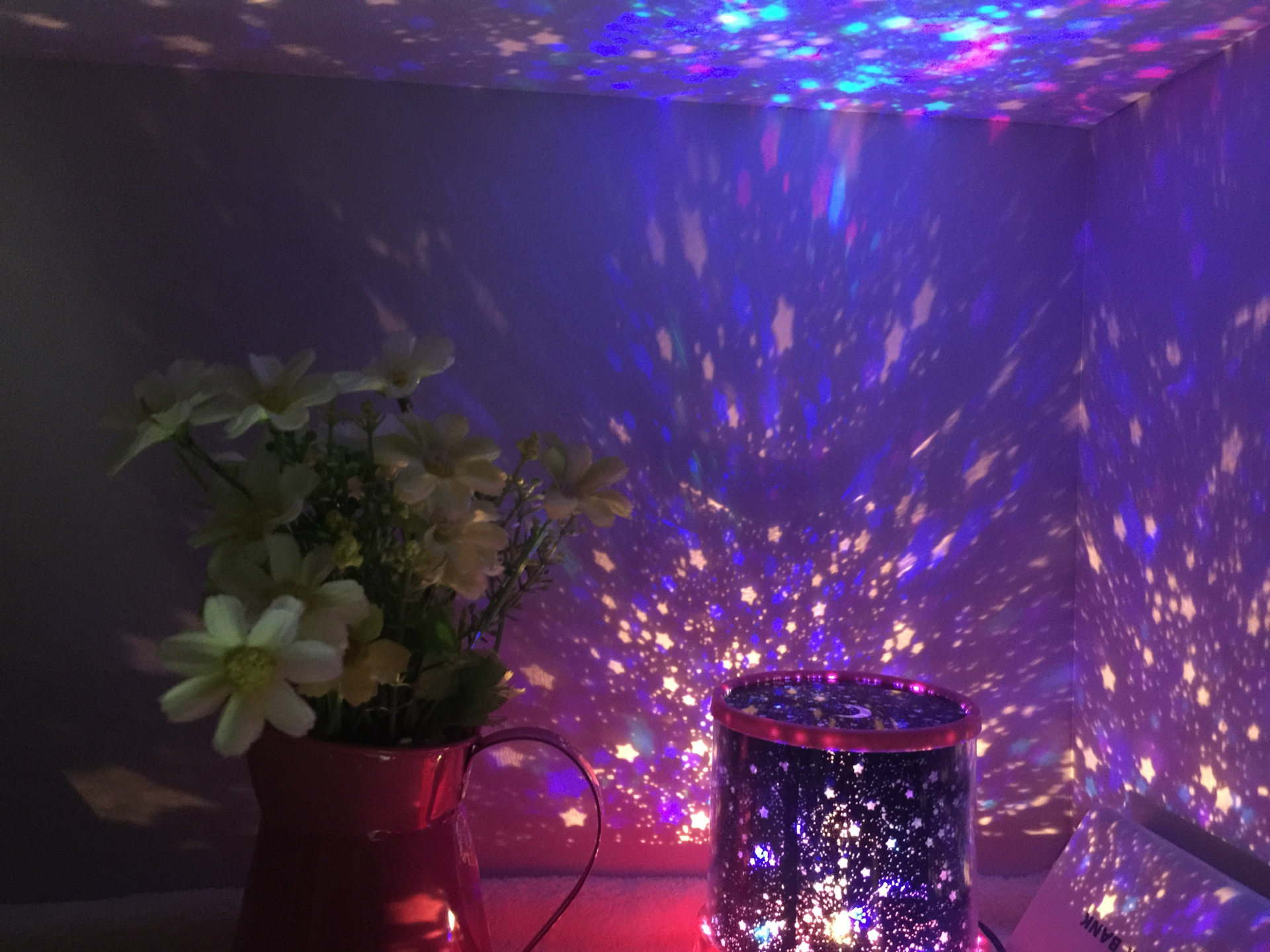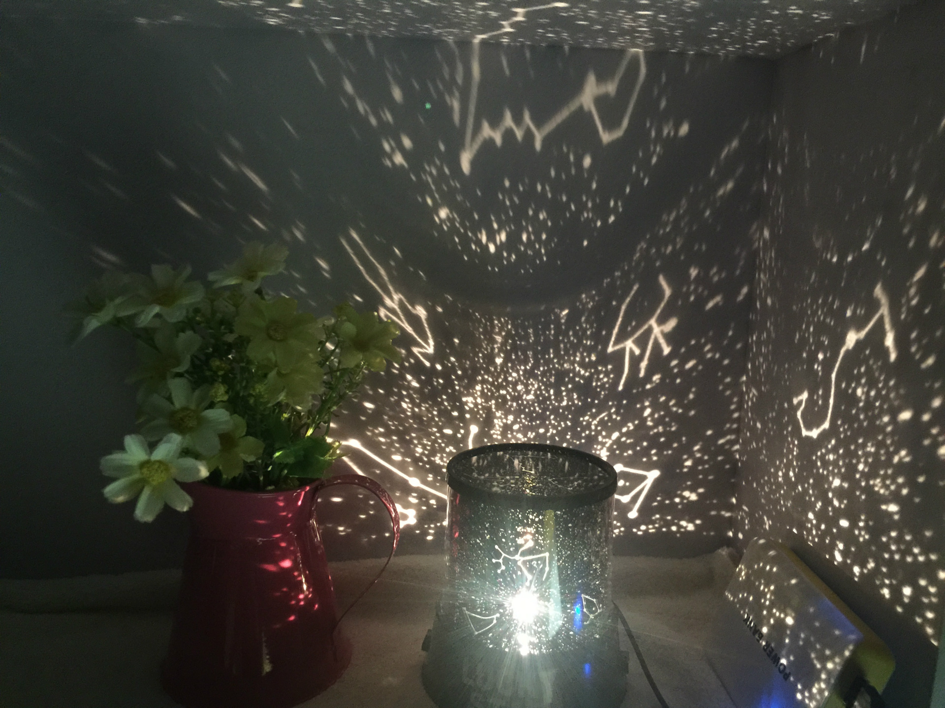 投射灯发出的光射在墙壁和天花板上,形成一个充满星星的夜空,可以将寝室变为一个非常舒适,沉静的星空,创造一个美丽而寂静的环境,可以营造出非常浪漫的环境。