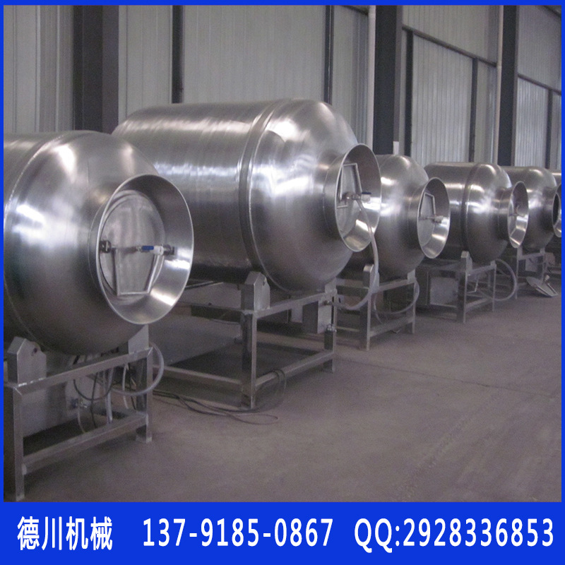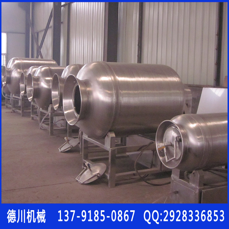 不倒翁运用物理冲击法则使肉在桶中上下运动,碰撞,敲击,按摩和腌渍。不倒翁可使肉均匀吸收腌渍,可以提高肉的结合力。肉和产品的弹性;它可以改善产品的味道和横截面效用;可以提高保水率,提高产量。整机由不锈钢制成,构造连贯。滚筒的两边使用旋盖构造,最大限度地增加了滚筒的撞击空间,使轧制产品功效均匀,噪声小,性能精确,操作简便,使用效率更高。高的。
