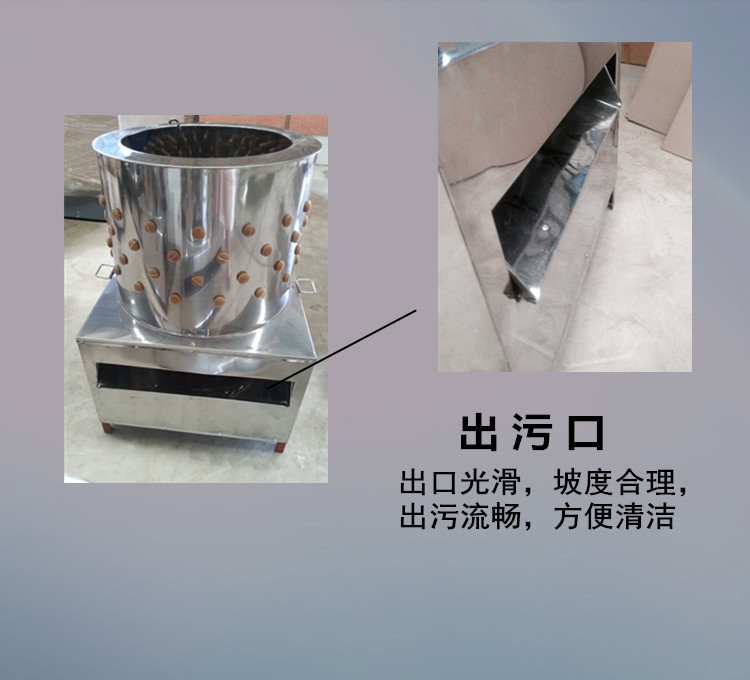 在65-80度的开水中均匀地洗净宰杀的鸡,鸭和鹅,然后打开机器并将其放入桶中(江,马铃薯,鱼可以直接放入)。约十秒钟后,打开水龙头可以将鸡毛或姜皮显影掉。您可以在一段时间内将其取出。鸡毛一般而言只需拖半分钟,其他时间会稍长一些。