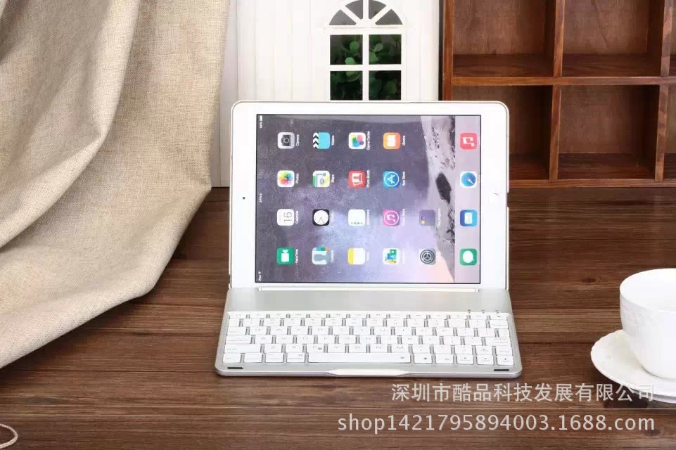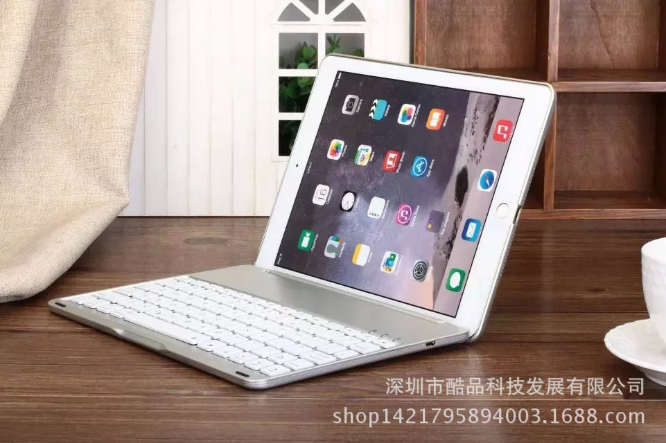 产品详情:1.产品功能:笔记本电脑式翻盖设计,仔细制作的铝合金材质(后壳也贴有铝合金),智能感应电源开关(电源敞开时开启),无密码智能蓝牙联接ABS便利快捷,有着七种颜色的舒适按钮LED背光灯(可以选项和切换七种颜色,可以调节或关闭亮度)具自动睡眠功能,该按钮具以防少量进水的功能令人反感的是,使用保护壳设计和ipadAir2的全盘保护,超薄超轻盈的设计配戴在便携式皮带上,人性化的视角支撑设计,手感舒适和高端时尚。将完美元素整合为一体,实现非凡品质超级体会蓝牙键盘!