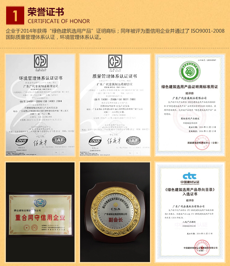 该公司在2014年赢得了“绿色建筑物精选产品”认证标记;在同一年,它被评为声誉不错的企业并通过ISO9001-20