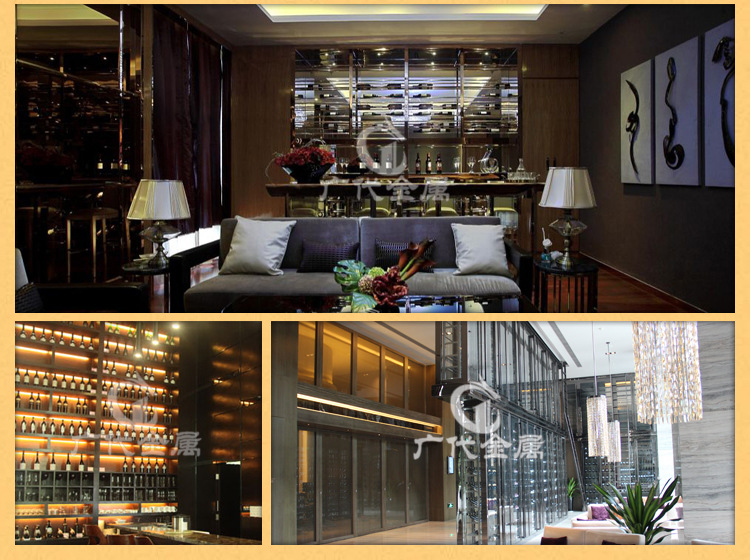 不锈钢酒柜式样:金属不锈钢酒柜,青铜不锈钢恒温酒柜,镜面不锈钢恒温酒柜,玫瑰金不锈钢酒柜,青古铜不锈钢玻璃酒架,镜面玫瑰金不锈钢酒柜架,圆形不锈钢酒架,青古铜不锈钢挂壁酒架等。可根据客户要求定做。