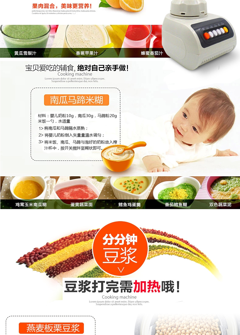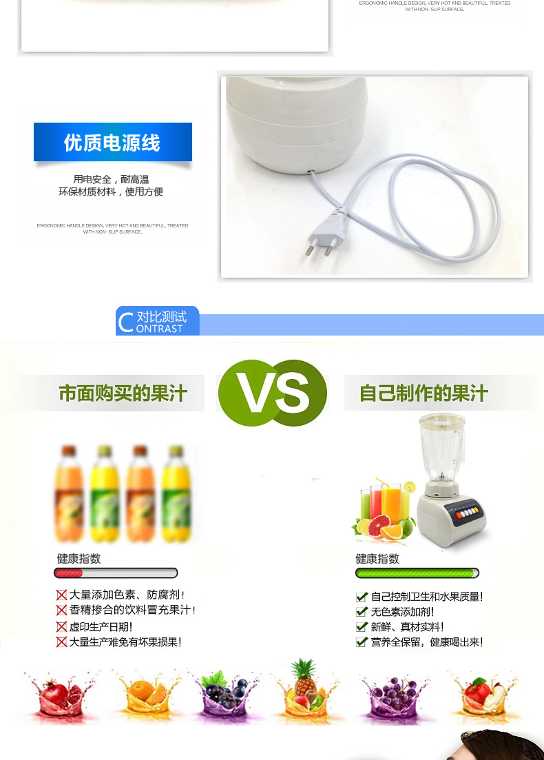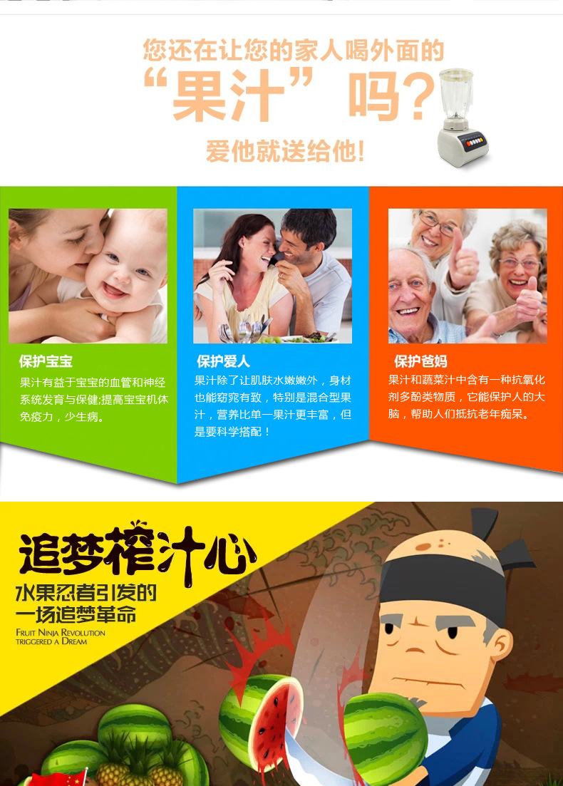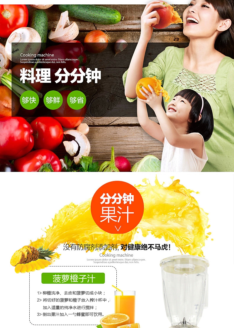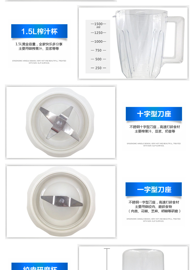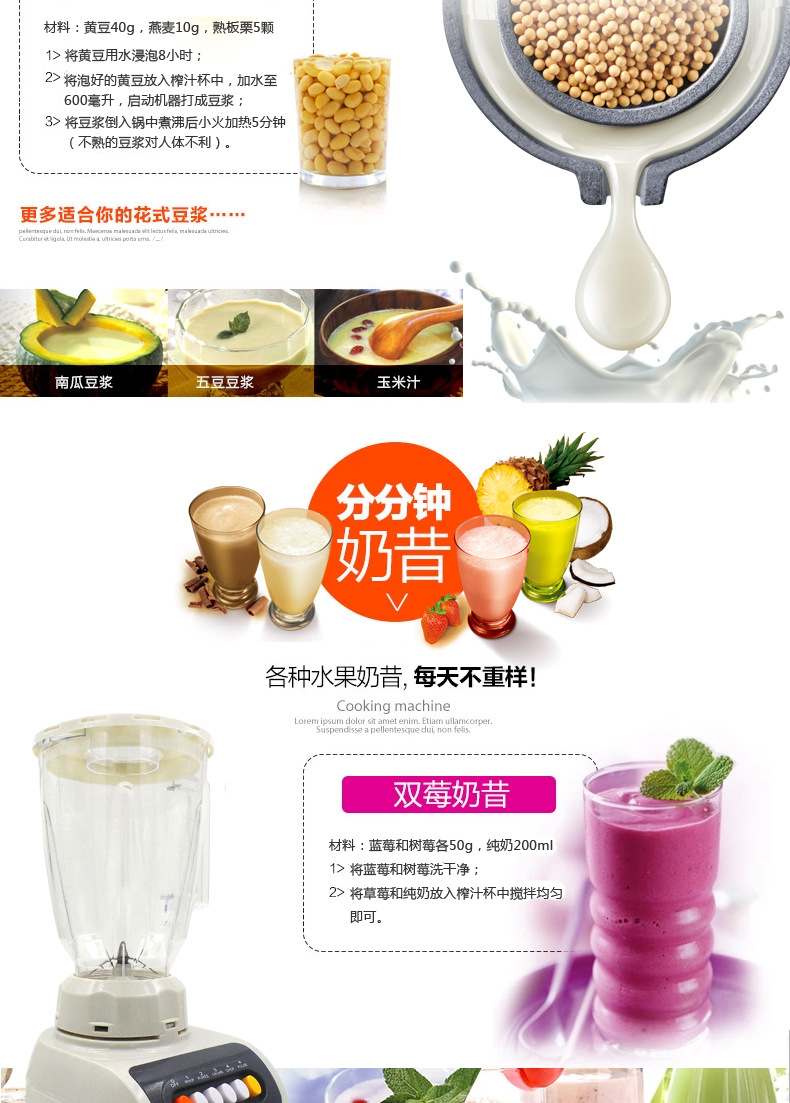 - 榨汁机附加功能榨汁,打蛋,干磨,碎冰,碎肉,和面