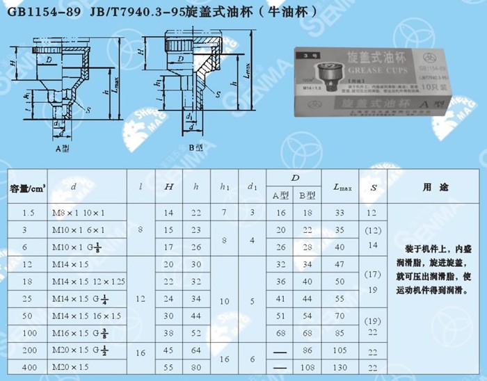 油杯有多种螺纹规格。定购时请注意所需的螺纹尺
