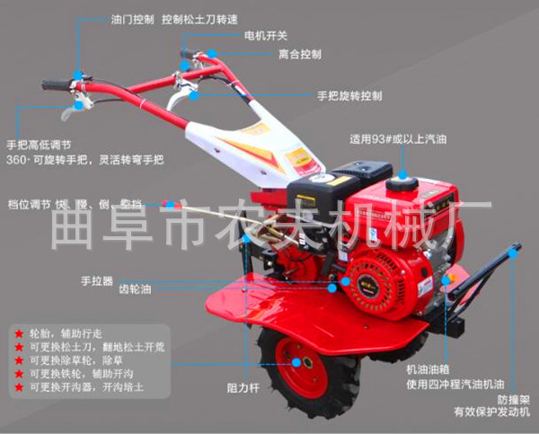 产品详情:曲阜农机械提供的微耕机的机能: