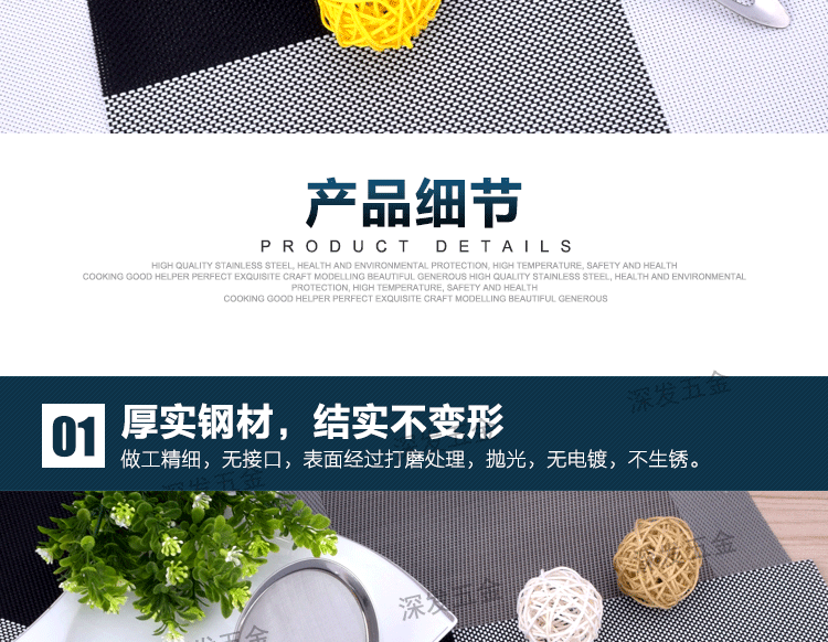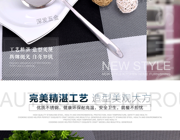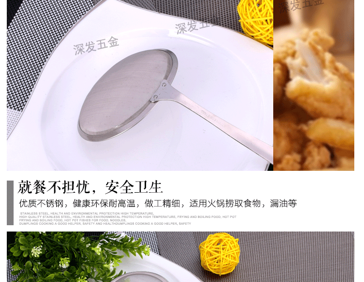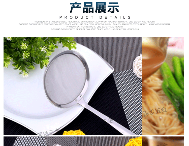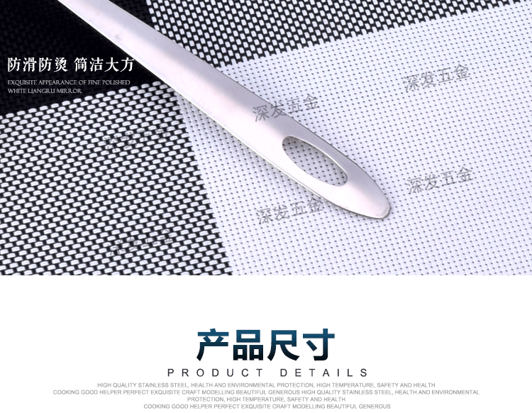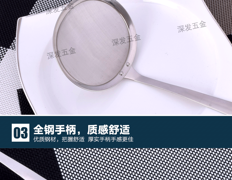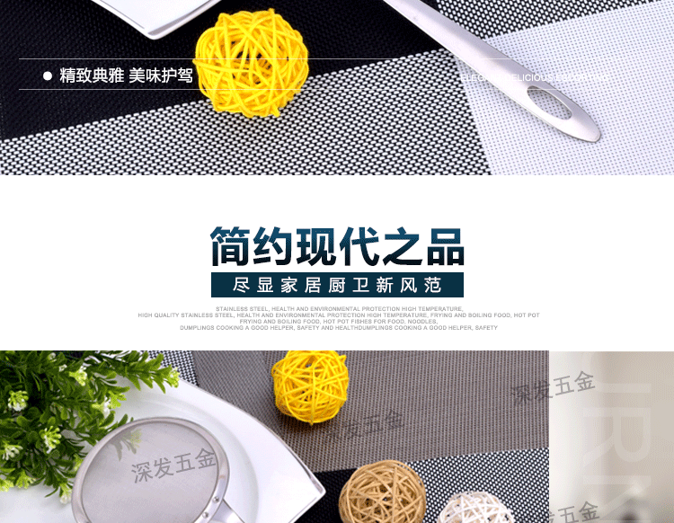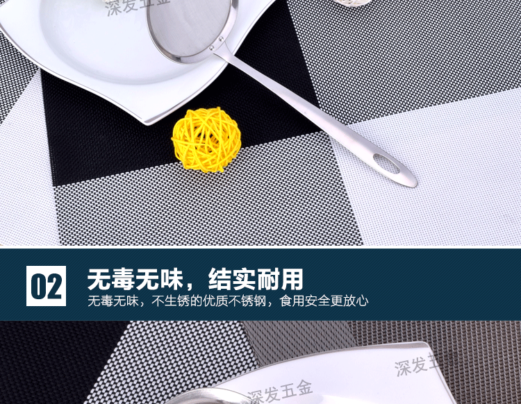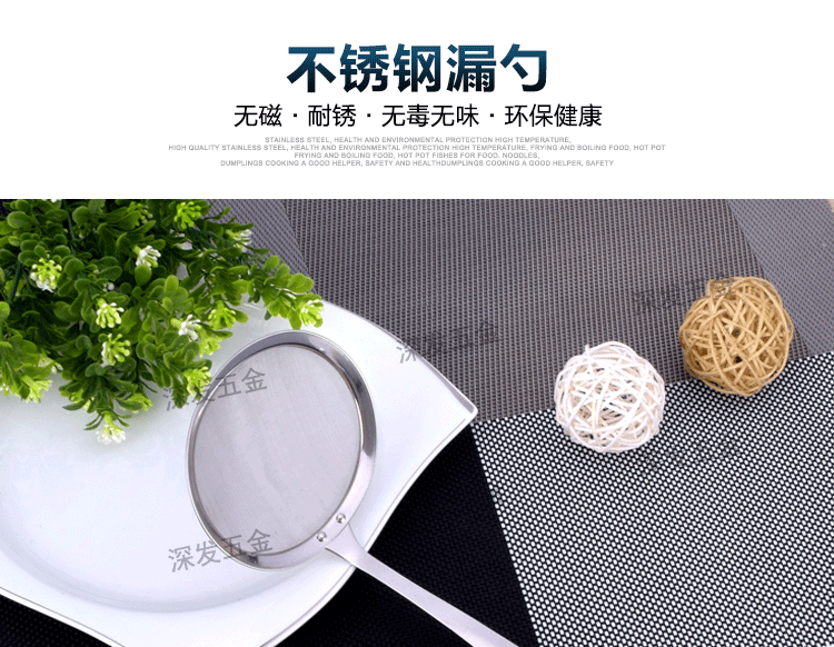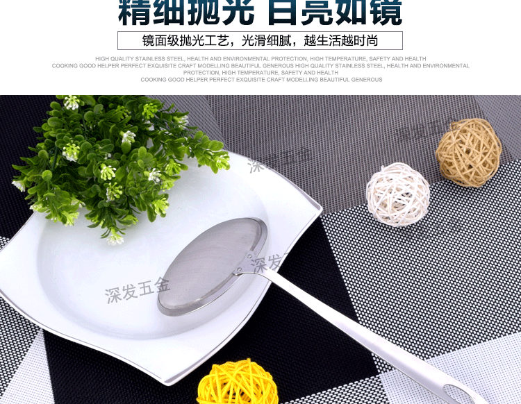 产品详情:揭阳市深发五金制品有限公司坐落广东省揭阳市东山区,交通简便,环境美妙,气候宜人,欢迎来样加工!欢迎致电来样咨询!本公司专业生产:不锈钢饼干模具,蛋糕模具,不锈钢西餐餐具,旅行餐具,礼物餐具,中式不锈钢厨具,不锈钢锅铲,不锈钢饭勺,不锈钢汤壳,不锈钢汤漏,不锈钢锅勺,不锈钢茶包夹子,不锈钢茶包钳,不锈钢茶包,不锈钢网茶包,不锈钢锅铲,不锈钢勺,不锈钢量杯等厨房必需品。工厂持有先进的生产装置和各种生产线,现代化的生产工艺,专业的技术团队和先进的管理理念。优异的产品质量,多样的式样和精良的外观。