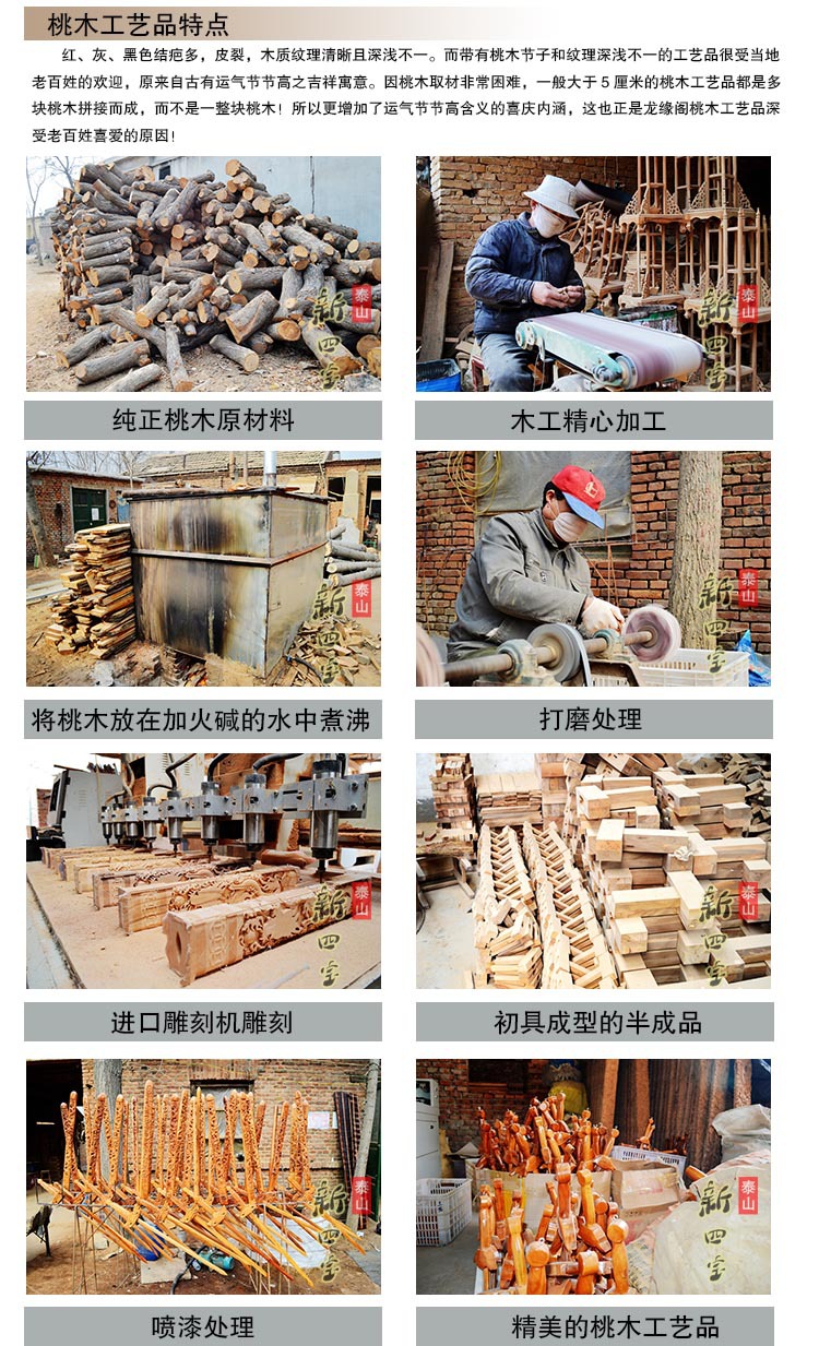 产品详情:桃木工艺品的一同特点:许多红色和灰色的结,破裂的皮肤,原始的色调,清晰的木材纹理和大的不准则图案。