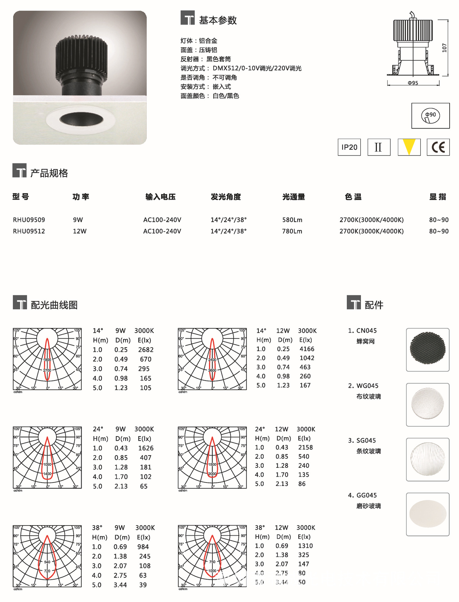 - 发光角度12/24/38 (°)