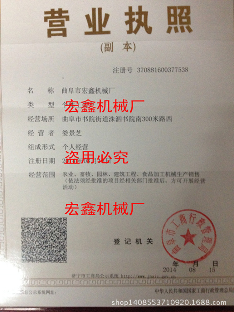 厂商地址:山东省曲阜市书院开发区!诚信提醒:提早定金,可以快递物流,货到后付清余款!