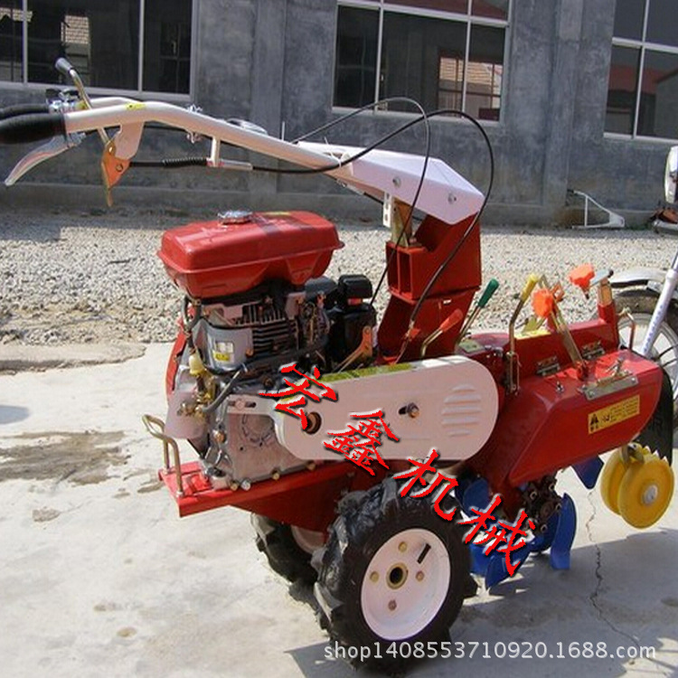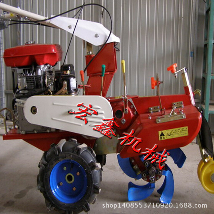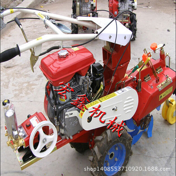 该机器包括一个框架和可调节高度的扶手。车架配备(风冷或水冷)柴油或汽油发动机。车架和扶手均配有变速箱。变速箱的输出轴配备有可沿轴移动的驱动器。轮子或链条导轨。主要传动方法为:全齿轮传动,皮带传动和链条传动。该机具备重量轻,油耗低,相对功率高,构造连贯,机动性强,操作简便灵巧等特征,可以爬坡,横脊,阶梯结实等特征,普遍适用于深耕,浅耕旱地,水田,果园,菜地,冲积平原,山区和丘陵地区的烟田的耕作和耕作。配备相应的装置,可以开展旱地旋耕,稻田旋耕,抽水,开沟,喷洒,喷洒,除草碎土等,也可以拖曳拖车开展近距离运输。它是大中型农业机械无法比拟的多功能田间管理机,工作安定准确,采用寿命长,维修便利等,是进入农民家庭的最完美田间管理机。