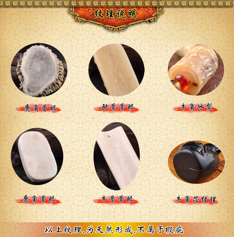 工厂采用骆驼骨,牦牛骨,鹿骨,角,角,鹿角,马蹄铁,驴蹄和其他系列的角骨材质,