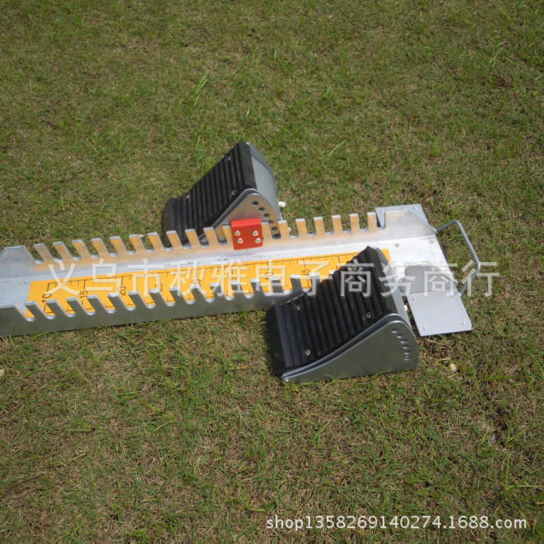 产品介绍:使用提高铝合金制成,稳固坚实。踏板出发点和前后相距均可随便调节,底部装有塑料履带固定短钉,是特别的竞赛型用以塑料运转起跑器