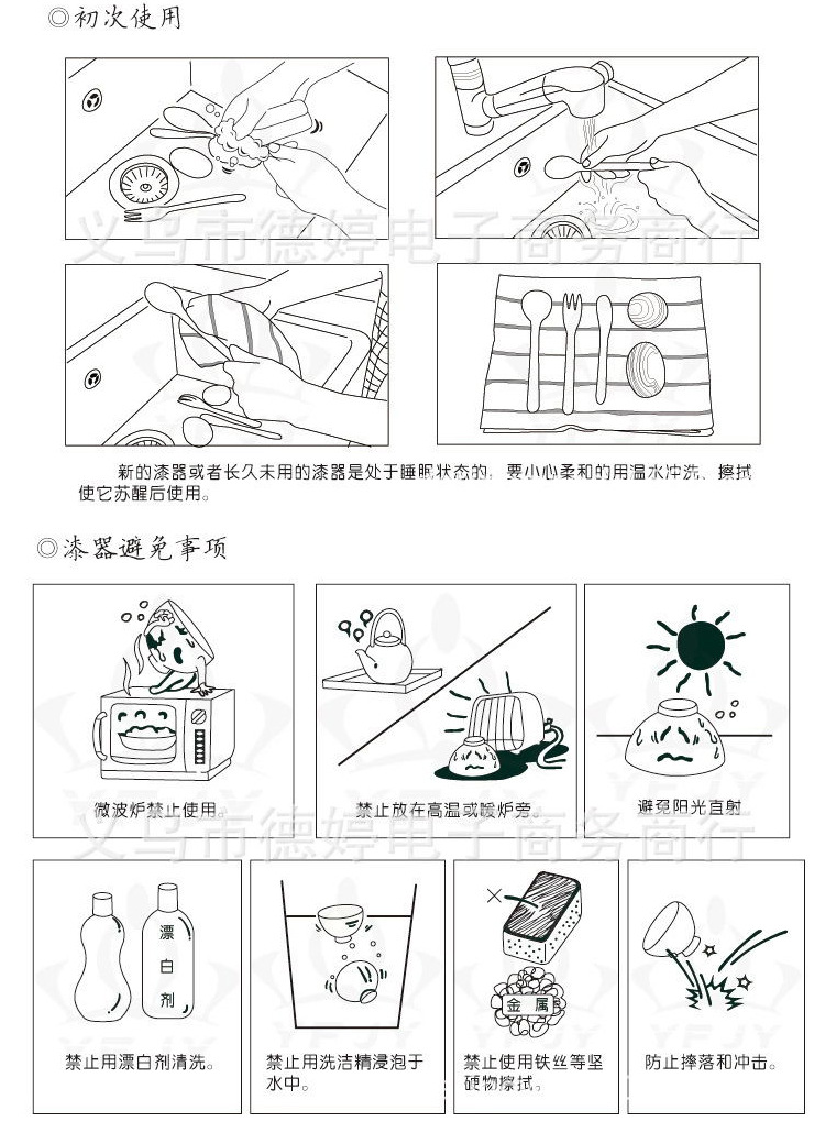 对于新购买的木制品,我们提议您不要在热水中煮沸或除垢,因为这很容易损坏圆木构造并大大缩短木碗的寿命。首次使用木制品时,我们一般而言提议将它们浸泡在盐水中约3-4个小时,然后正常清洁。!第一次清洁后,木质产品的表面会有些粗糙的感觉到。这是正常的。随着使用次数的增加,筷子将变得愈发光滑。