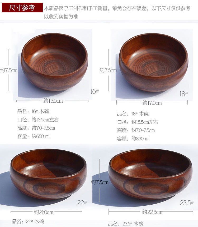 - 颜色16#木碗,18#木碗,20#木碗,22#木碗,23.5#木碗,勺筷套装