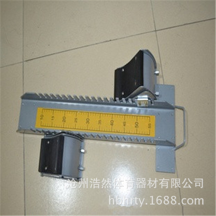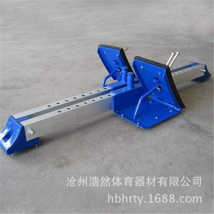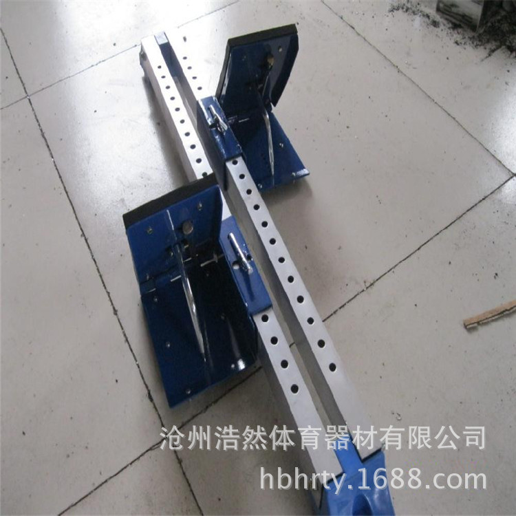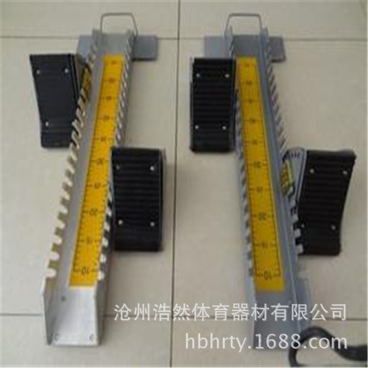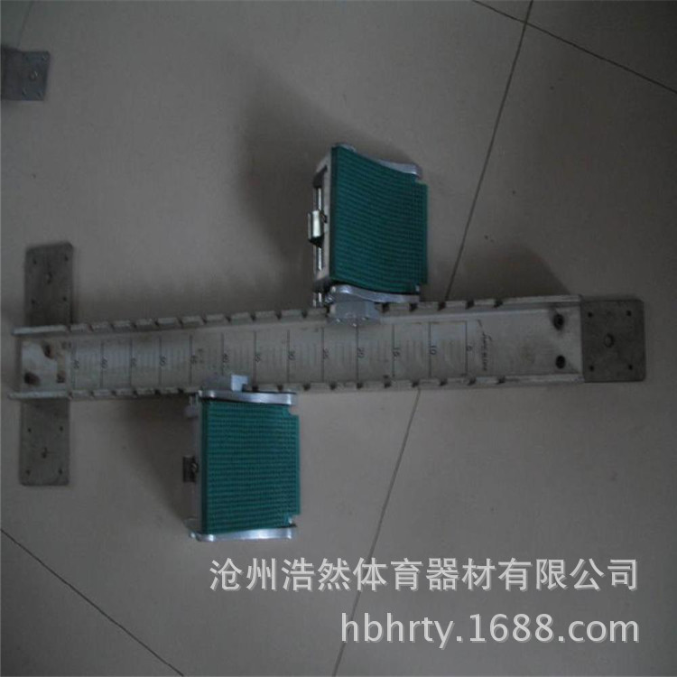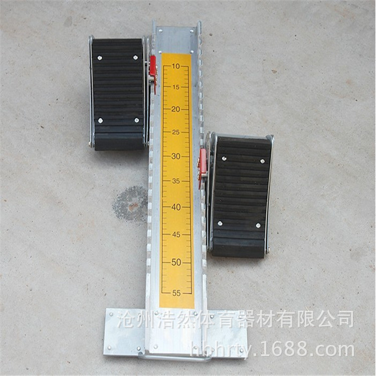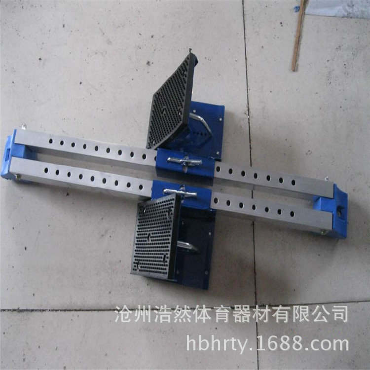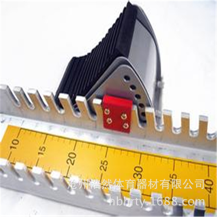 铝合金或冷轧钢板底座,长90厘米(±3厘米),宽9厘米,厚度4毫米脚踏板底座是冷轧钢板或带橡胶层的铝合金。脚踏板的距离和倾斜度可调。八个定位销,适当用以塑料场地,混合场地等。