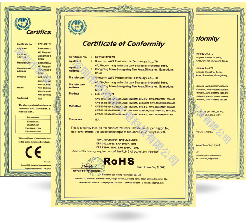 公司已先后通过ISO9000:2008国际质量管理认证,欧盟ROSH认证,CE认证等。为了您的参与,请选取爱唯斯光电分享我们美好的未来。