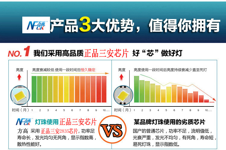 5.维护视力:LED节能灯颗粒采用直流驱动,无闪烁(普通灯由交流驱动,不可避免地会产生闪烁)