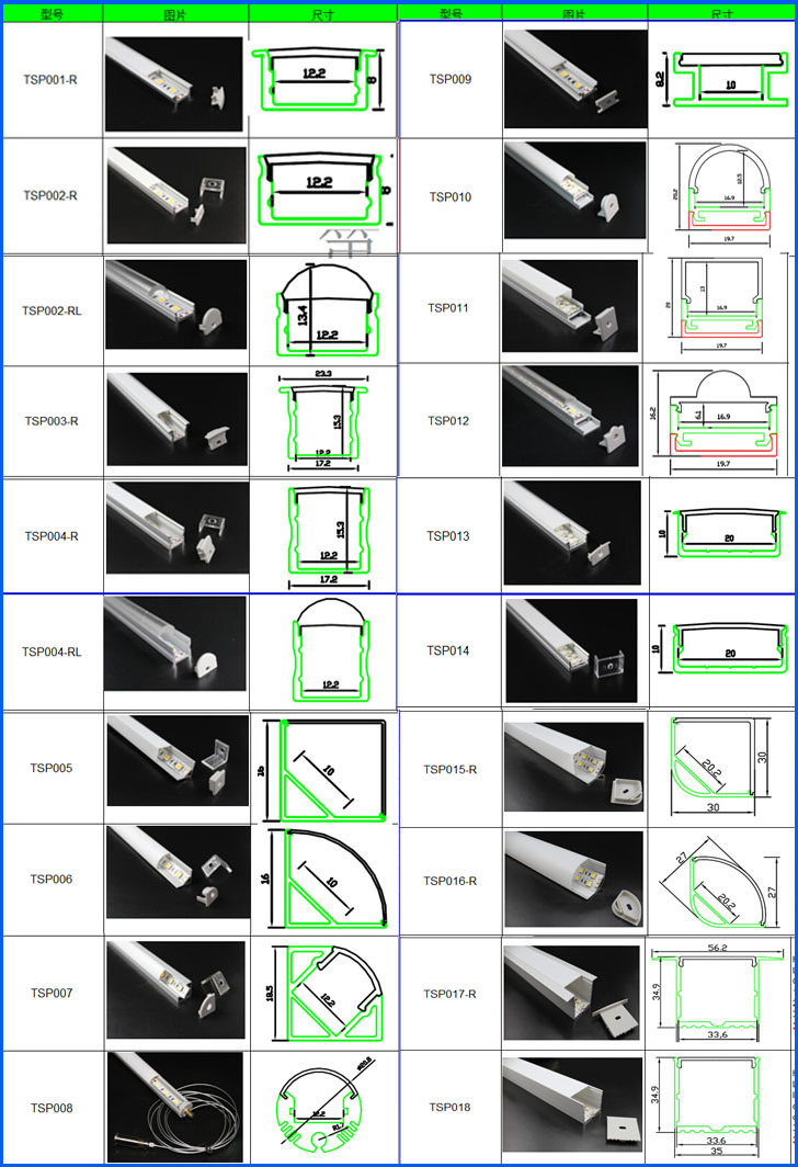 产品详情:该公司的led铝外壳款式完备,配置6mm,8mm,10mm,12mm,...30mm宽的铝基板,都兼具相应的铝外壳,外形美观,欢迎选购。
