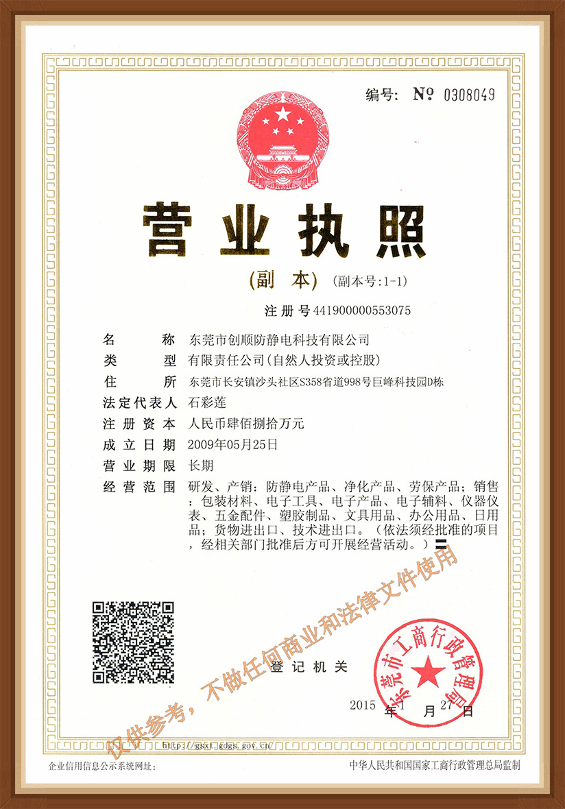 东莞市顺锋防静电制品厂是一家大型股份公司,与广东创顺隆科技股份有限公司,香港创顺科技国际有限公司,东莞市创顺防静电科技有限公司,深圳市创顺防静电科技有限公司等相关公司相关。该公司是一家专门从事手套的研发,生产和销售的制造商,鞋套,无尘布,无尘纸,粘垫,粘辊,防静电鞋,防静电衣物和防静电产品。产品普遍用以食品,诊疗,汽车,通讯,光学,光电子,电脑,半导体,显示器,背光源,电路板,电子组件,精细仪器,真空电镀,塑料喷涂,航空航天和其他高科技产业。
