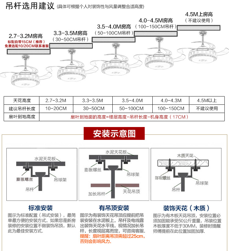 - 尺寸42寸 LED三色变光72w 遥控,42寸 LED三色变光72w 壁控,36寸 LED三色变光48w 遥控,36寸 LED三色变光48w 壁控,灯体颜色和吊杆长度修改请联系客服
