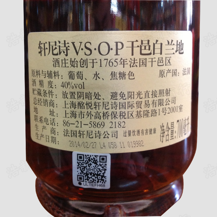 产品详情:轩尼诗VSOP干邑起源于19世纪英国王族的特别优惠,来自法国干邑四个顶级葡萄产区的60多种eaux-de-vie(生活之水)在19世纪末成为干邑world整个全球的质量标准。轩尼诗VSOP干邑兼具和谐细腻的口感,酒体细腻,散发着雅致和早熟的魅力。世界的nz@轩尼诗发烧友将苏打水或干姜水与冰块混杂饮水,引领了VSOP特酒的流行趋向,乐趣无穷